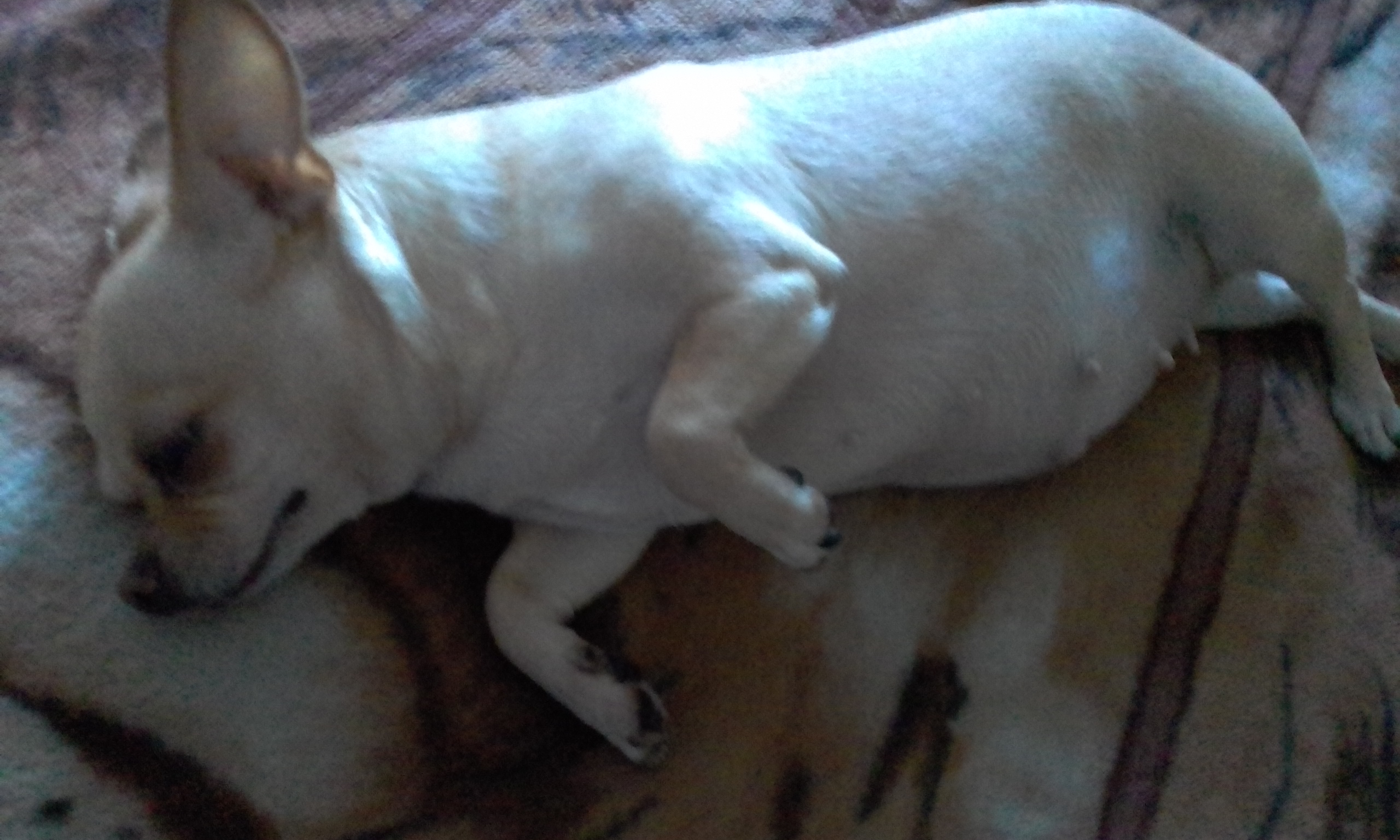 Наша чихуашка Джесси сейчас из мини догушки превратилась в подобную няшку. Ну вылитая пигушка со здоровым пузом. Особенно когда на боку лежит и похрюкивает.
