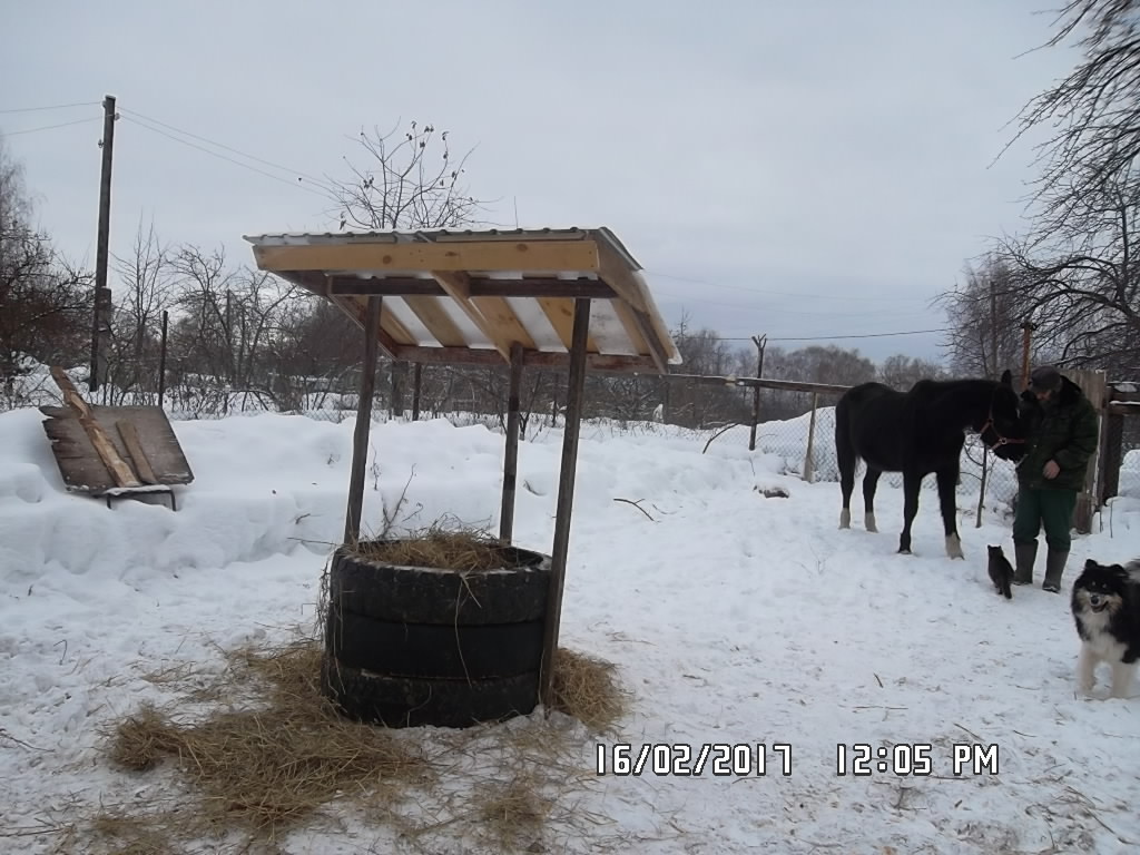 Я вам так скажу - лошадь содержать проще, чем собаку. Корма можно запасти сразу на весь год. Не надо варить им каши - корма даются сухие, либо, как для Чайки, запаренные.Я пайку овса за пару часов перед кормлением, заливаю кипятком. Потом сливаю воду через друшлаг, добавляю стакан молотой кукурузы, стакан отрубей, горсточку льняного жмыха. Туда же идут очистки - картошка, моркошка, капуста, яблоки. Просто перемешиваю и все. Очень она любит корки от мандаринов и апельсинов, и еще банановые. Покупаю ей в Пятерочке мешок моркови - она у нас по 15 руб. В мешке 20 - 23 кг. Скармливаю примерно по килограмму. В основном режу морковку на угощение из рук. У меня в леваде стоит кормушка из грузовых покрышек с сеном. Делаю в сене углубление и вываливаю приготовленную еду туда. Она долго выбирает овес из сена - все ей развлечение.Пока она ест - чищу ее , вычесываю шерсть, она сейчас линяет.Очесы шерсти забирают вороны и галки на гнезда. Она , когда съест свою пайку, начинает вымогать морковку из кармана - протягивает мне лапки( если не успею увернуться, может синяк поставить с размаху), кланяется, делает пируэты.
