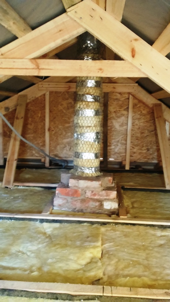 Делать каменную коробку выше чердака тоже нет смысла, выход дыма все равно пойдет через железную трубу довести до потолка для эстетичности и заглушить.