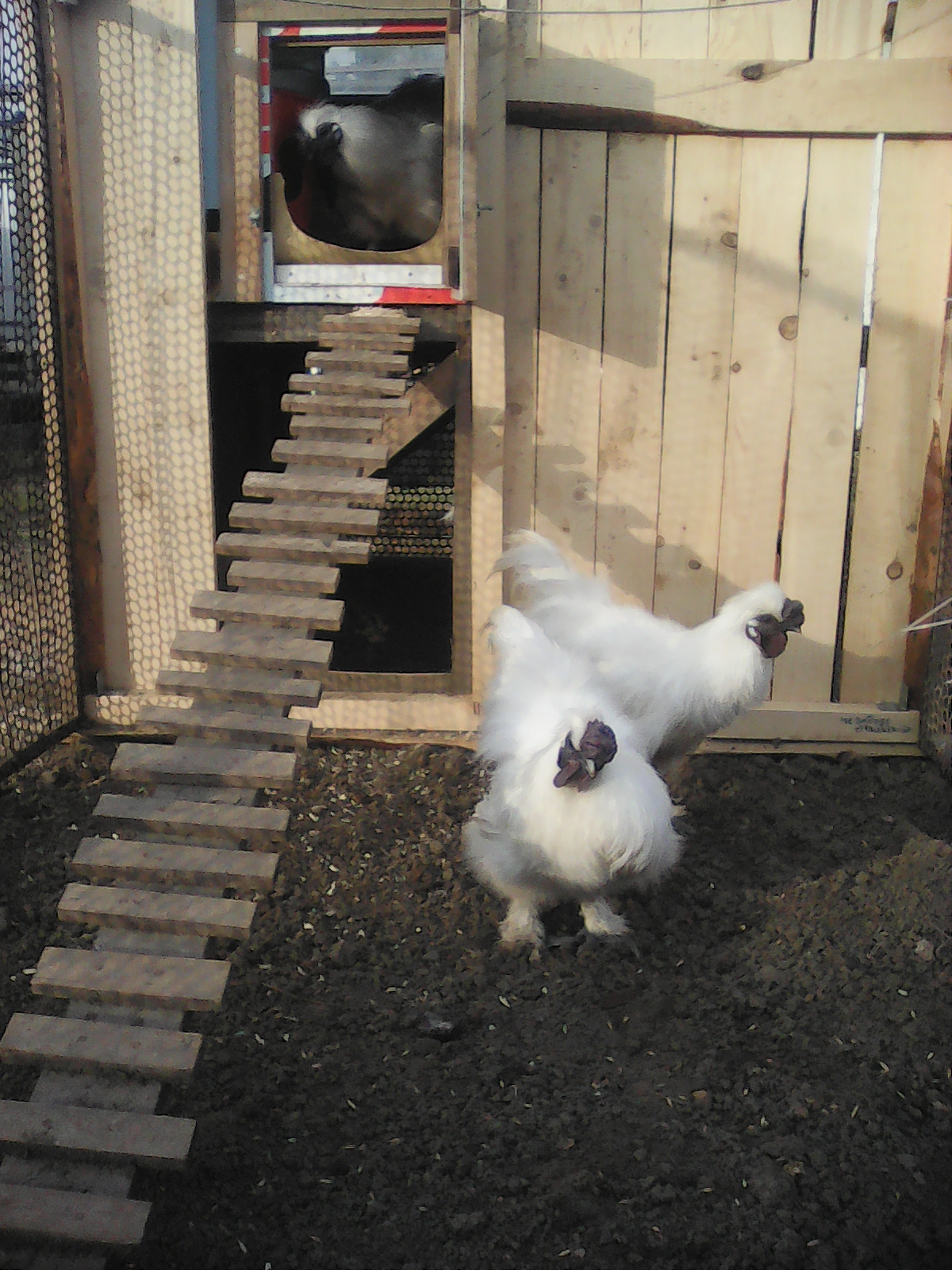 В таких малюсеньких птичниках насесты делают чуть выше входного отверстия. Под насестами настил, который закрывает гнезда от гуано.Но в любом случае, такой микроптичник - стресс для птицы. Ей трудно соблюдать иерархию, которая заключается в удаленности от альфы, хотя бы и на насесте. Альфа не должна доставать клювом до птиц, которые ниже ее по рангу.