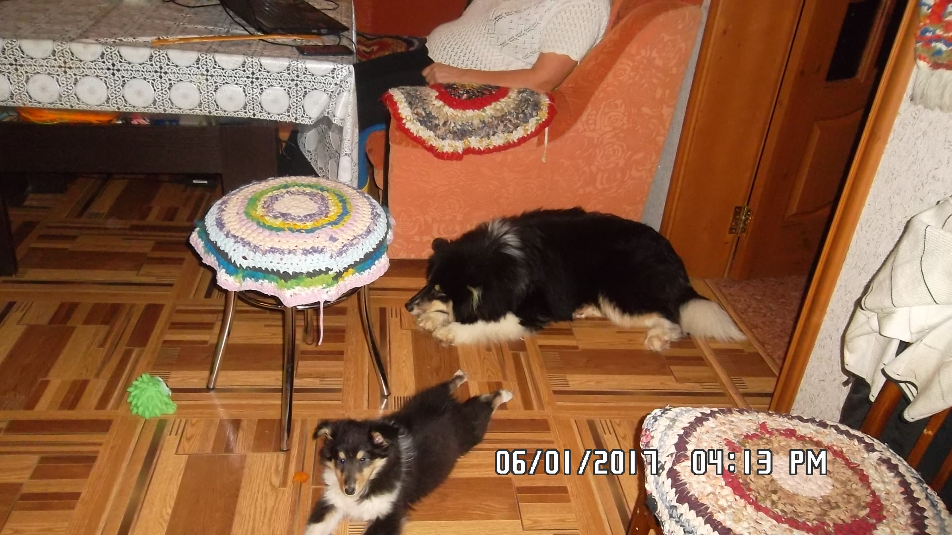 Это как бы колли, но сдается мне, что мимо пробегал чау-чау. Потому как младшенькая у нас точно колли, и на ее фоне чау-чаусть бросается в глаза.