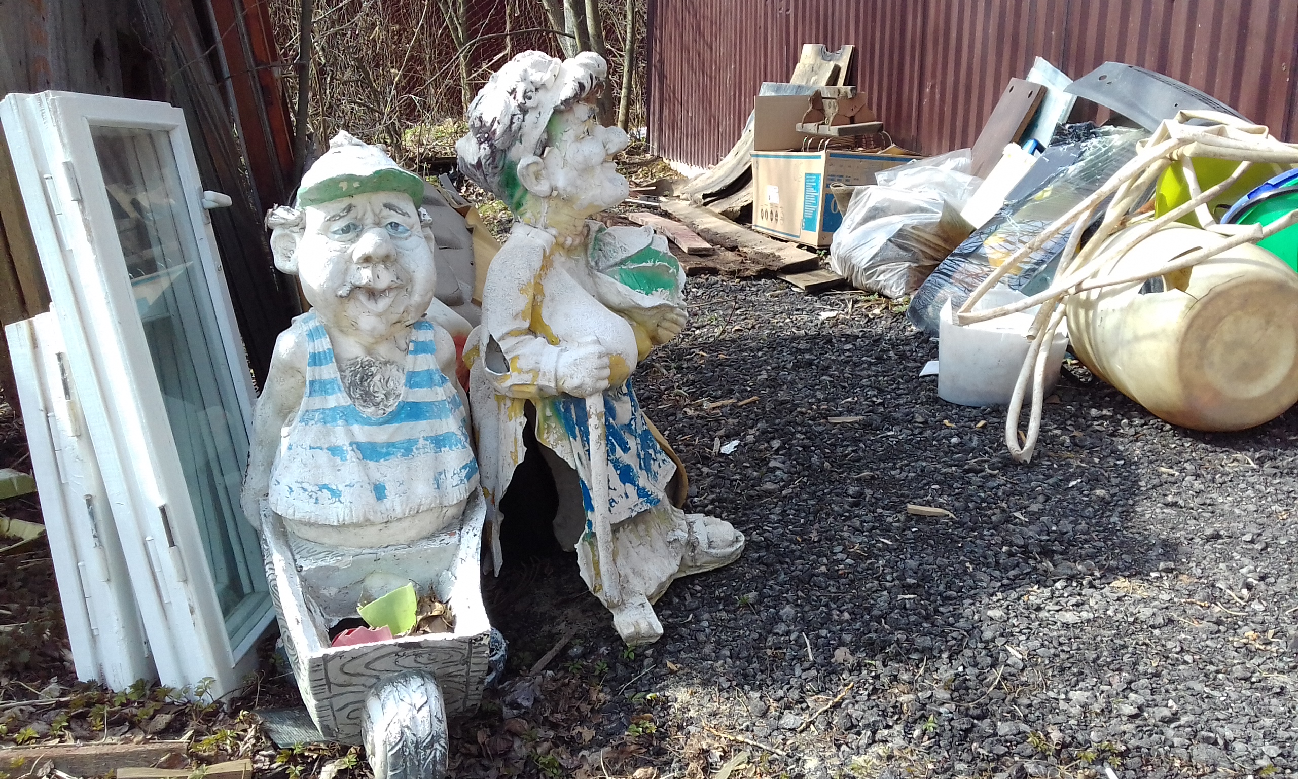 Вот сегодняшняя пожива с помойки. Дачники из гипса. Попросил их дух переселиться на мой участок.