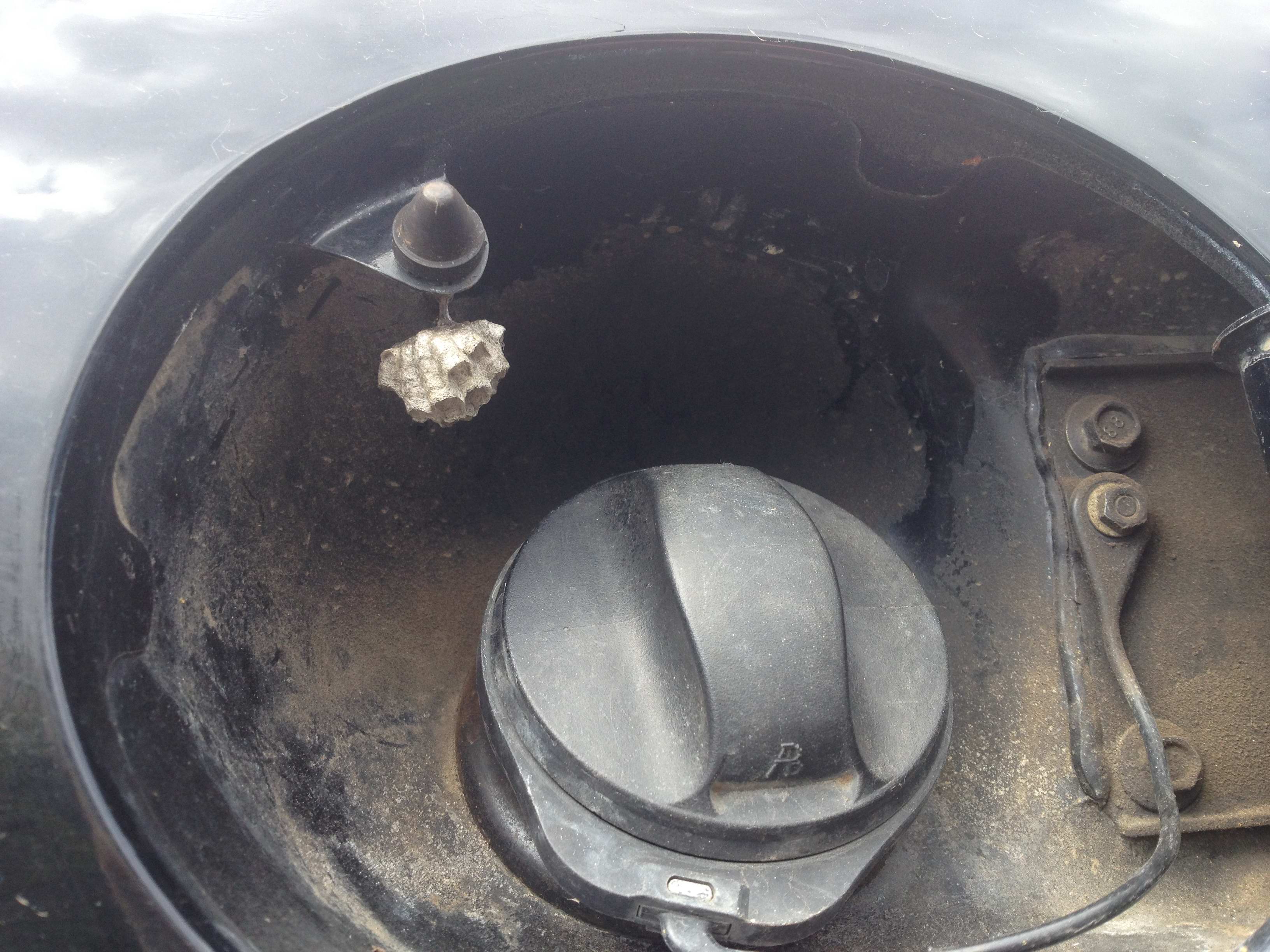 Сегодня приехала на заправку, открываю лючок, а оттуда оса вылетает! Смотрю - гнездо состряпала