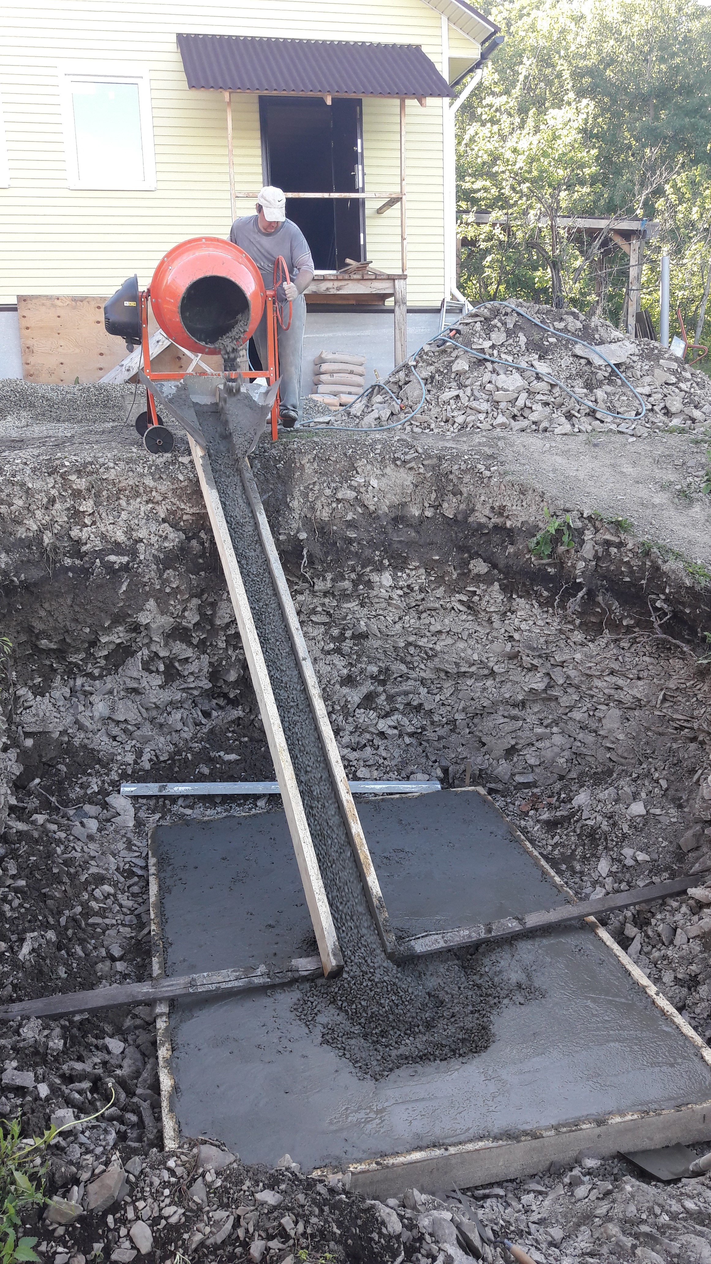 Ну да, с багажника, Даже чуть ближе чем песок, да и в мешках он. Приволок вдвоем мешки, уложил. Олег, там все рядом. Реально рядом. Да, лопатой махать, да спинку гнуть. Но не бегать с тачкой хрен знает куда. С одной стороны в бетономешалку кидаем, в другую сторону переворачиваем и льем. Задумка такая, и это минимум усилий. Твердо знаю что правильно - это когда быстро, без лишних движений и трудозатрат. Мы с тобой были на производстве, оба. И эти слова сказал не я, их говорит жизнь и практика. Поэтому в лепешку разбиться, но оборудовать удобное (и безопасное) рабочее место.