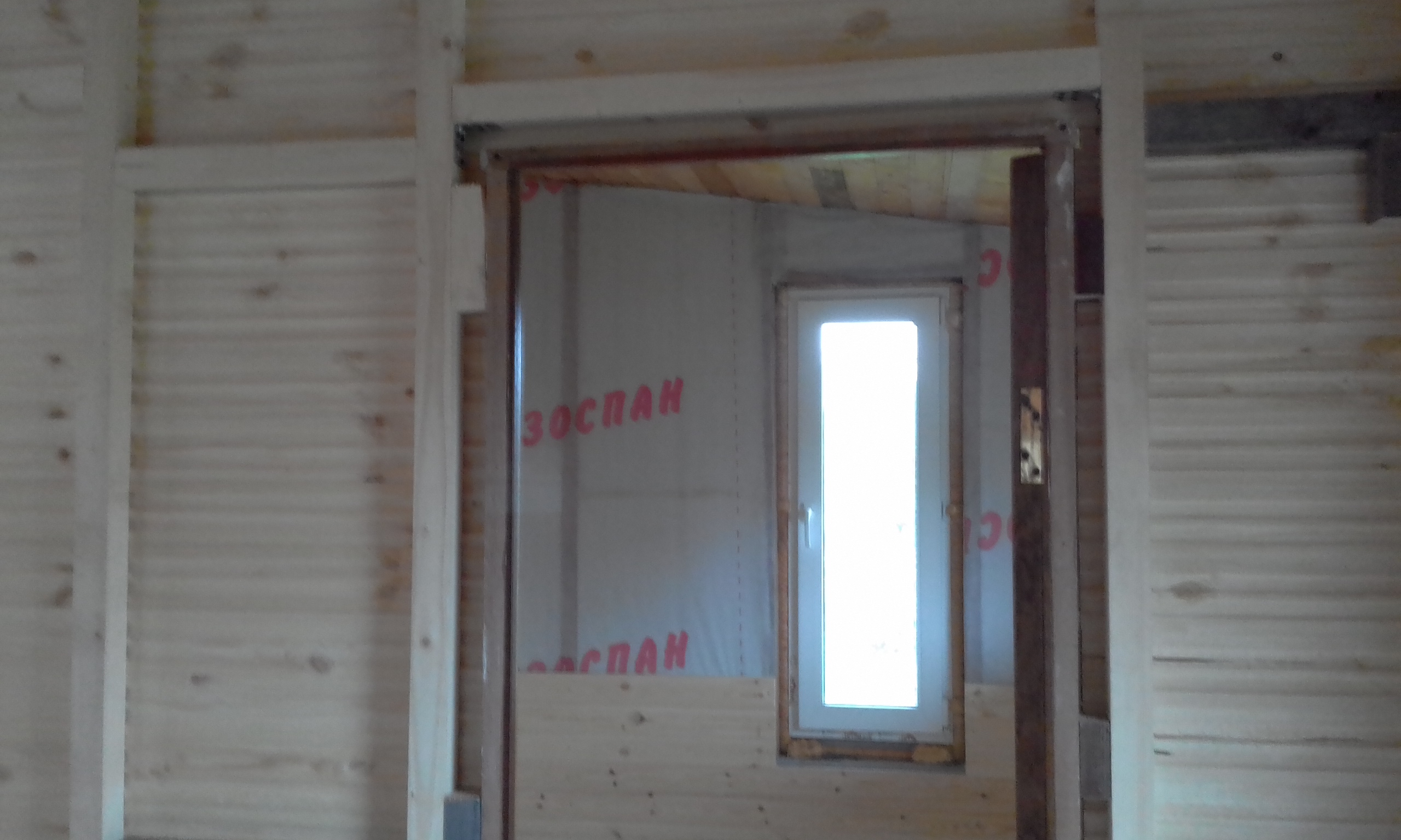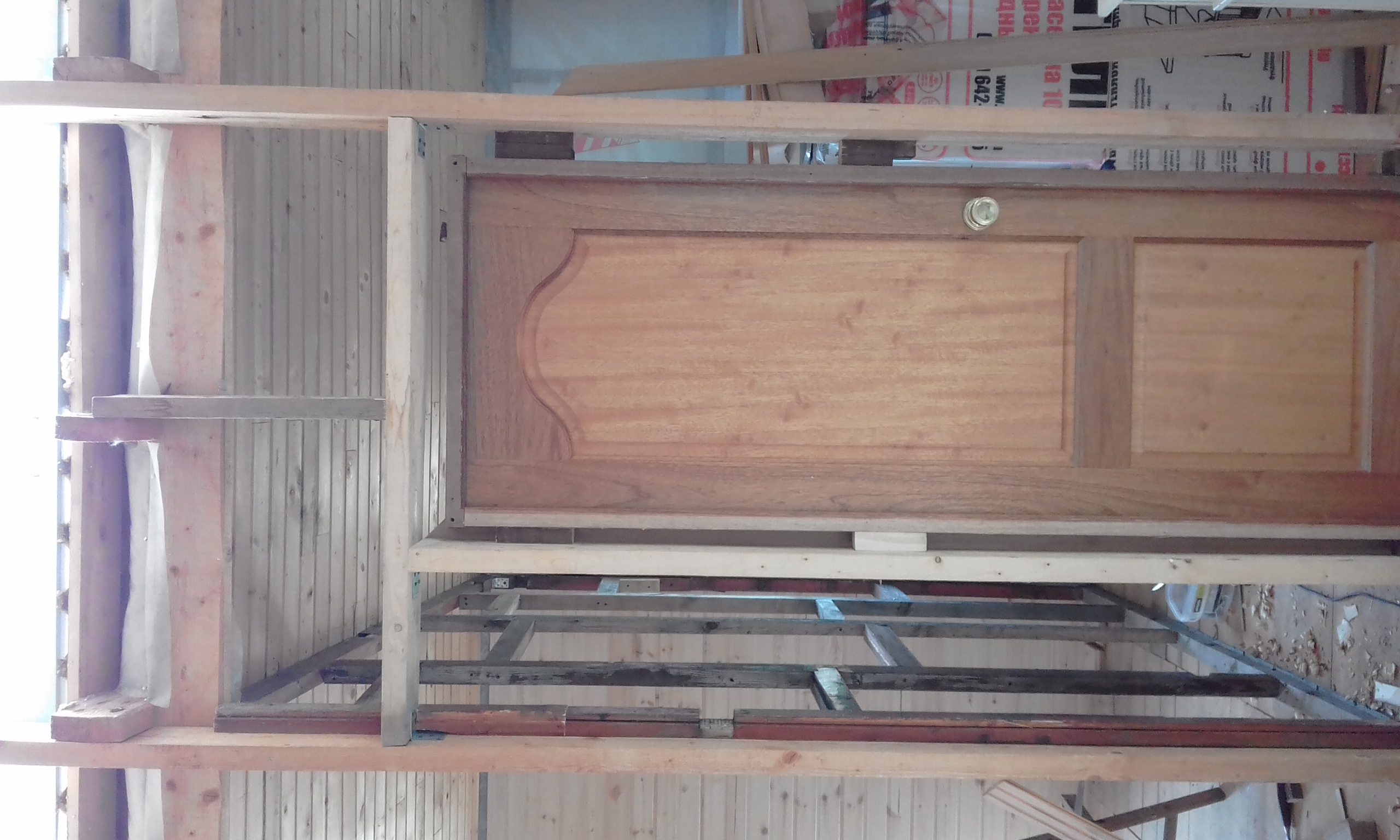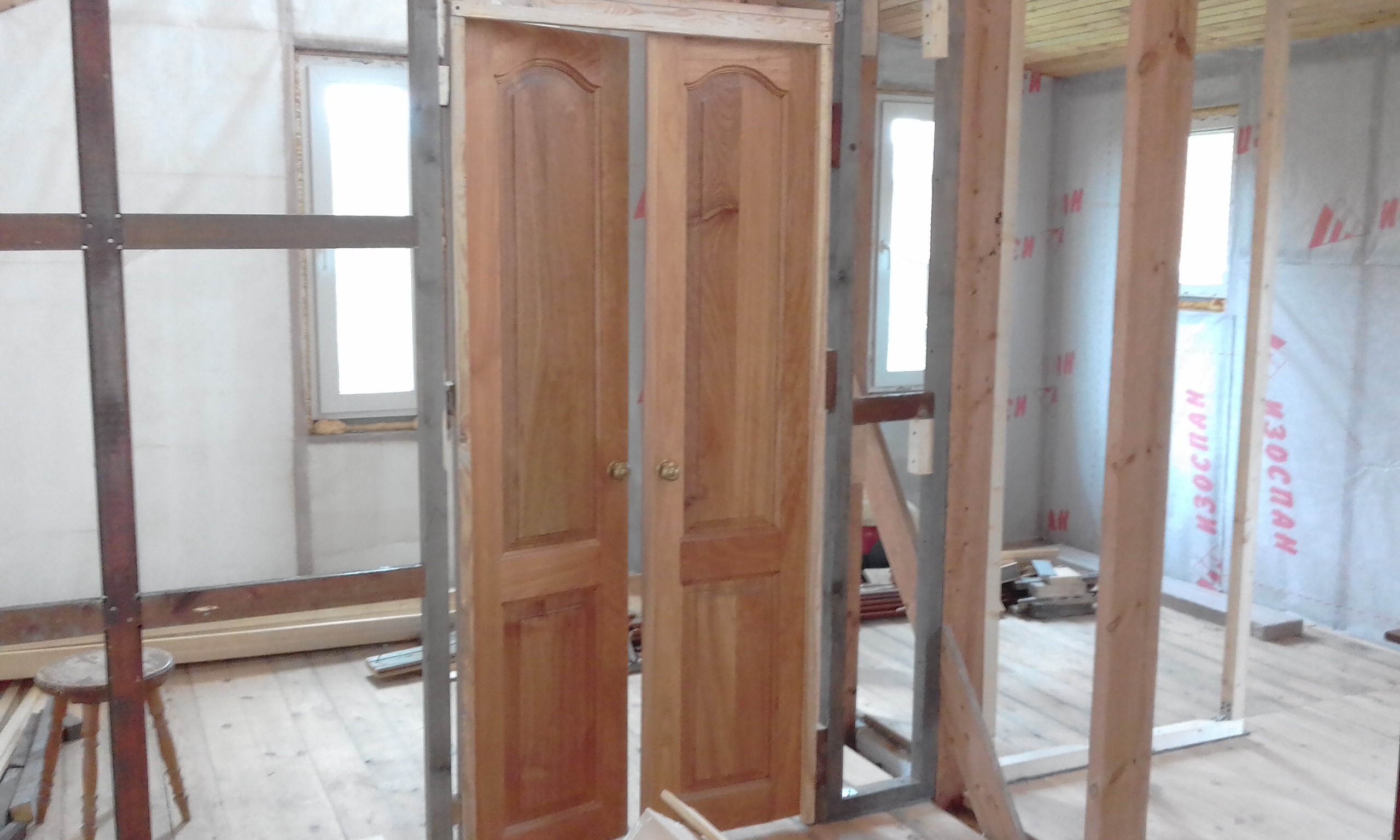 Выполнил каркаса перегородки в комнату жены и навесил дверь на петли.