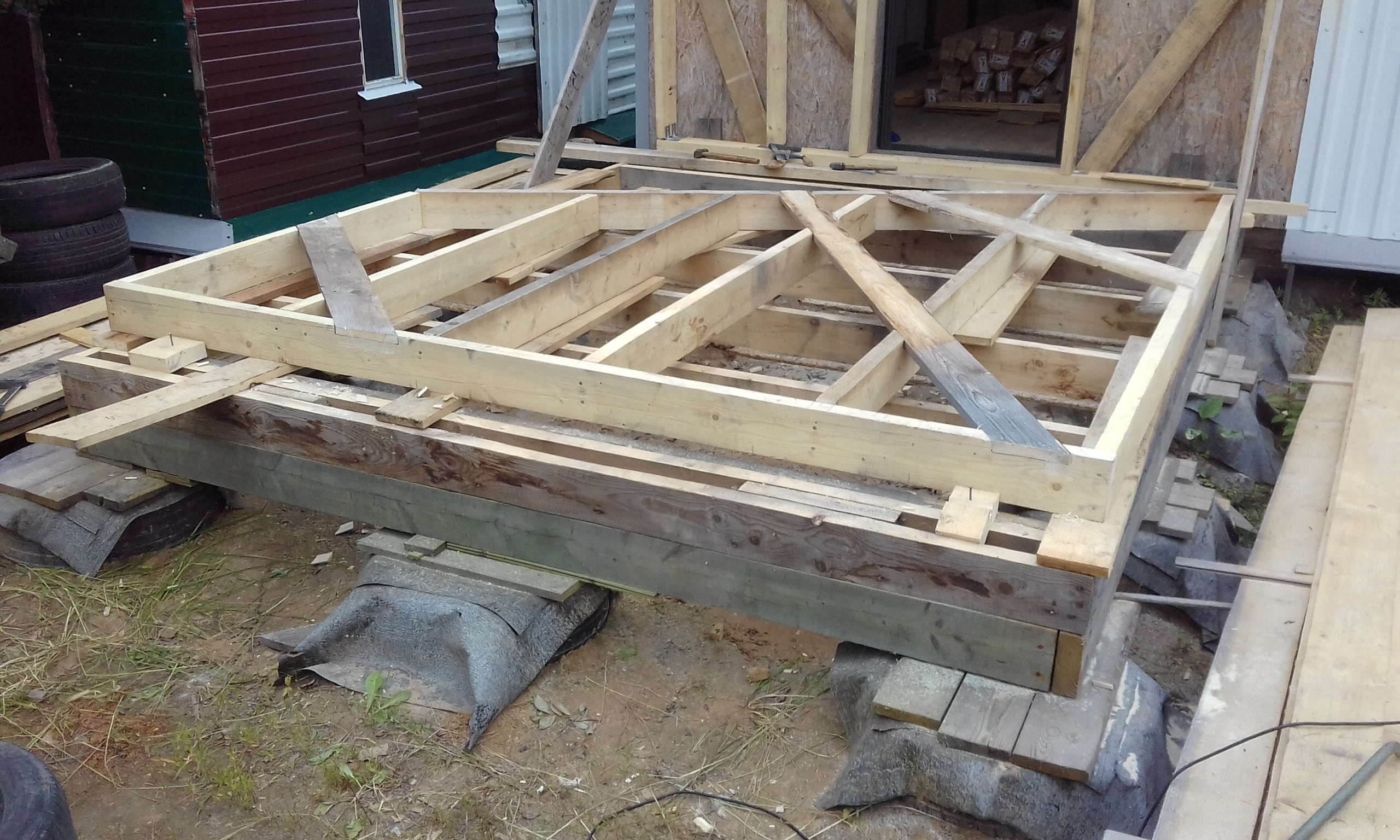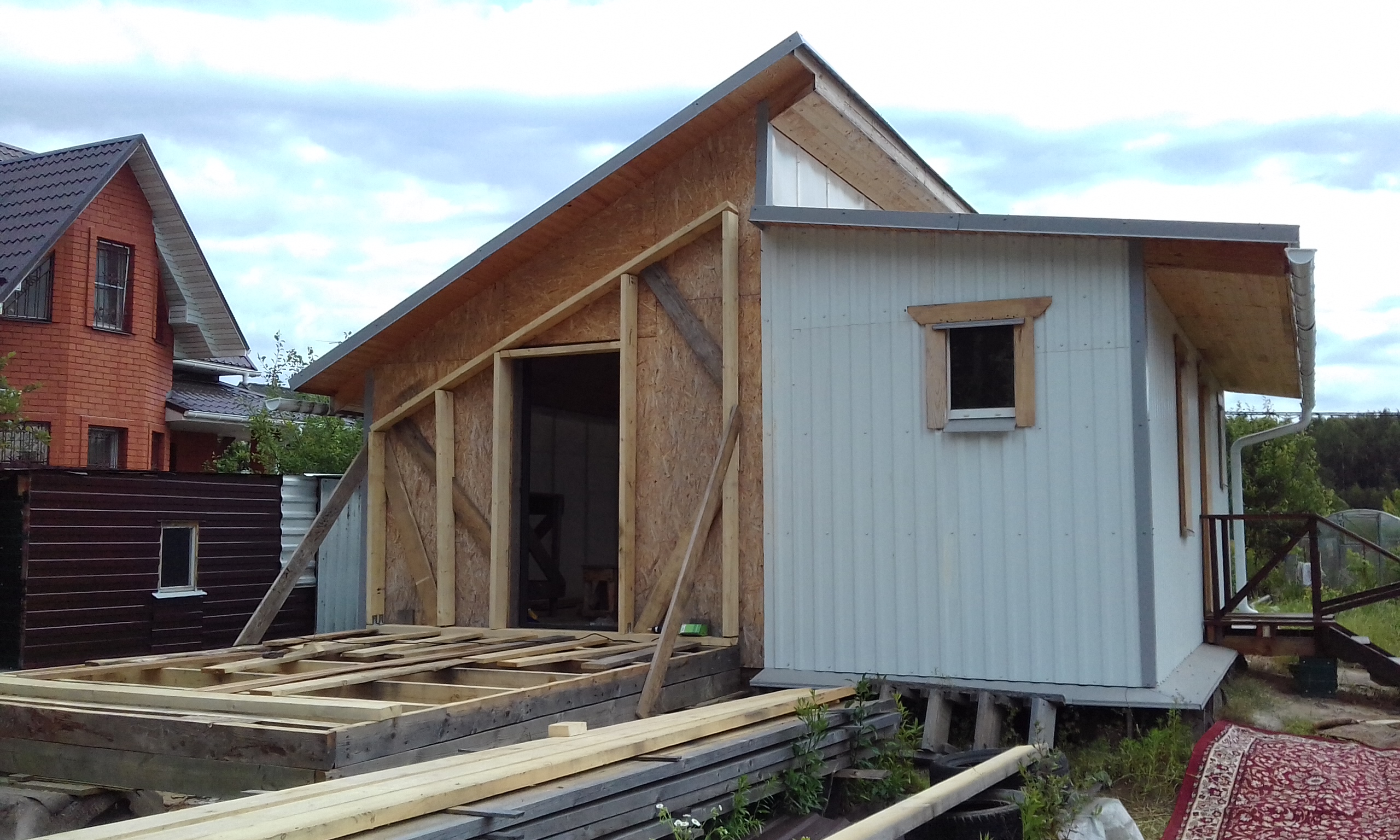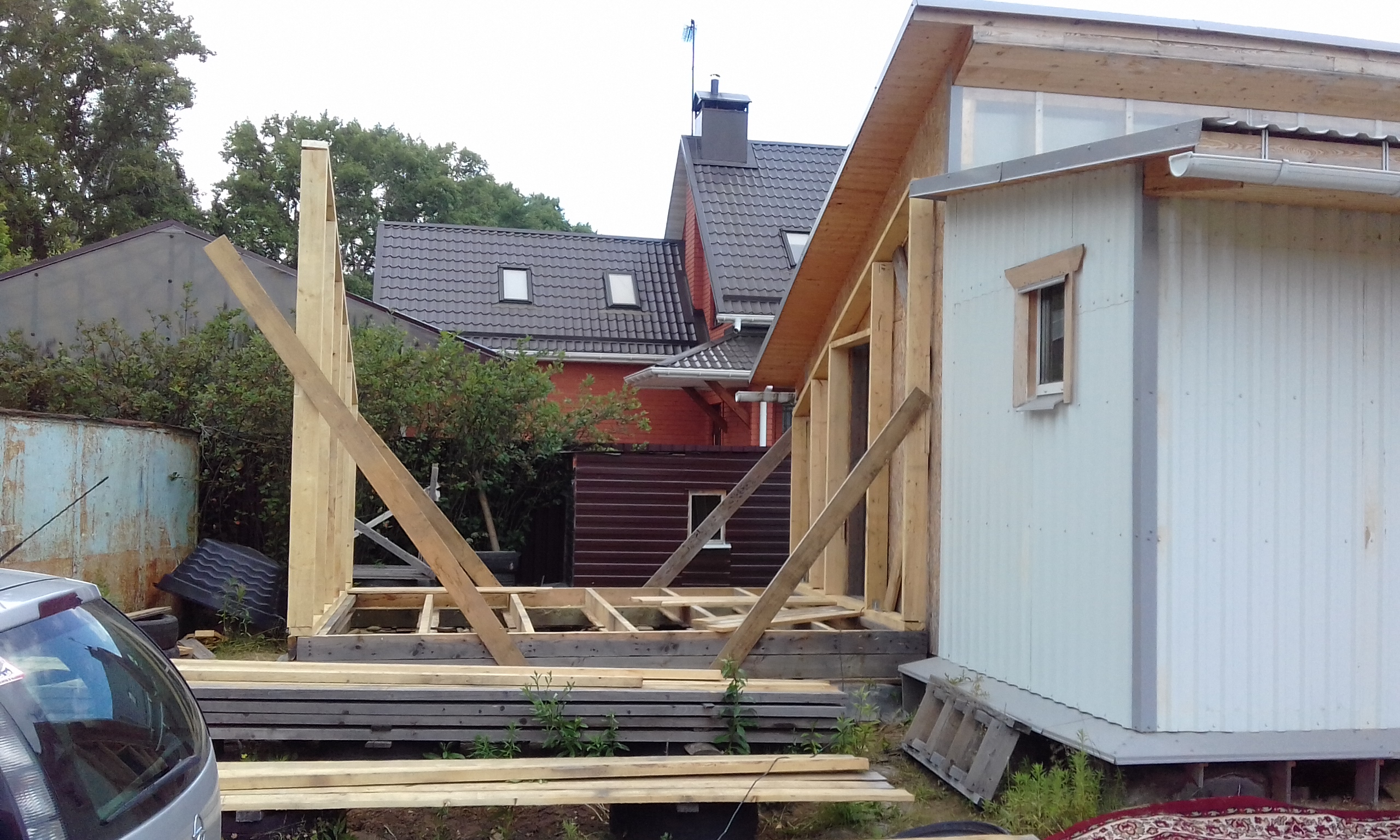 Установил второй каркас торца пристройки.