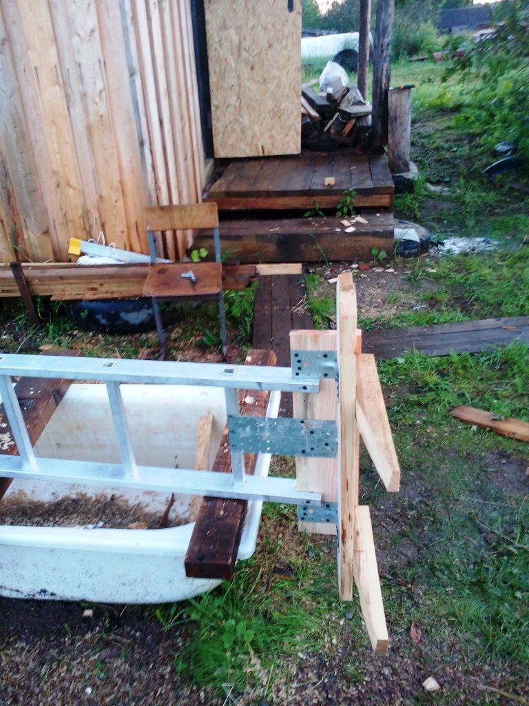2. Во вторых оборвалась ступенька взятой у соседа деревянной лестницы, разодрав мне ногу, и пришлось аврально ремонтировать и то и другое.