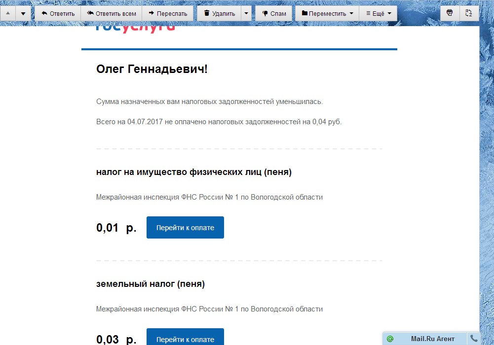 Не сдержался-ответил на сообщение. Неделю назад оплатил грошовые пени и вот того хлеще: