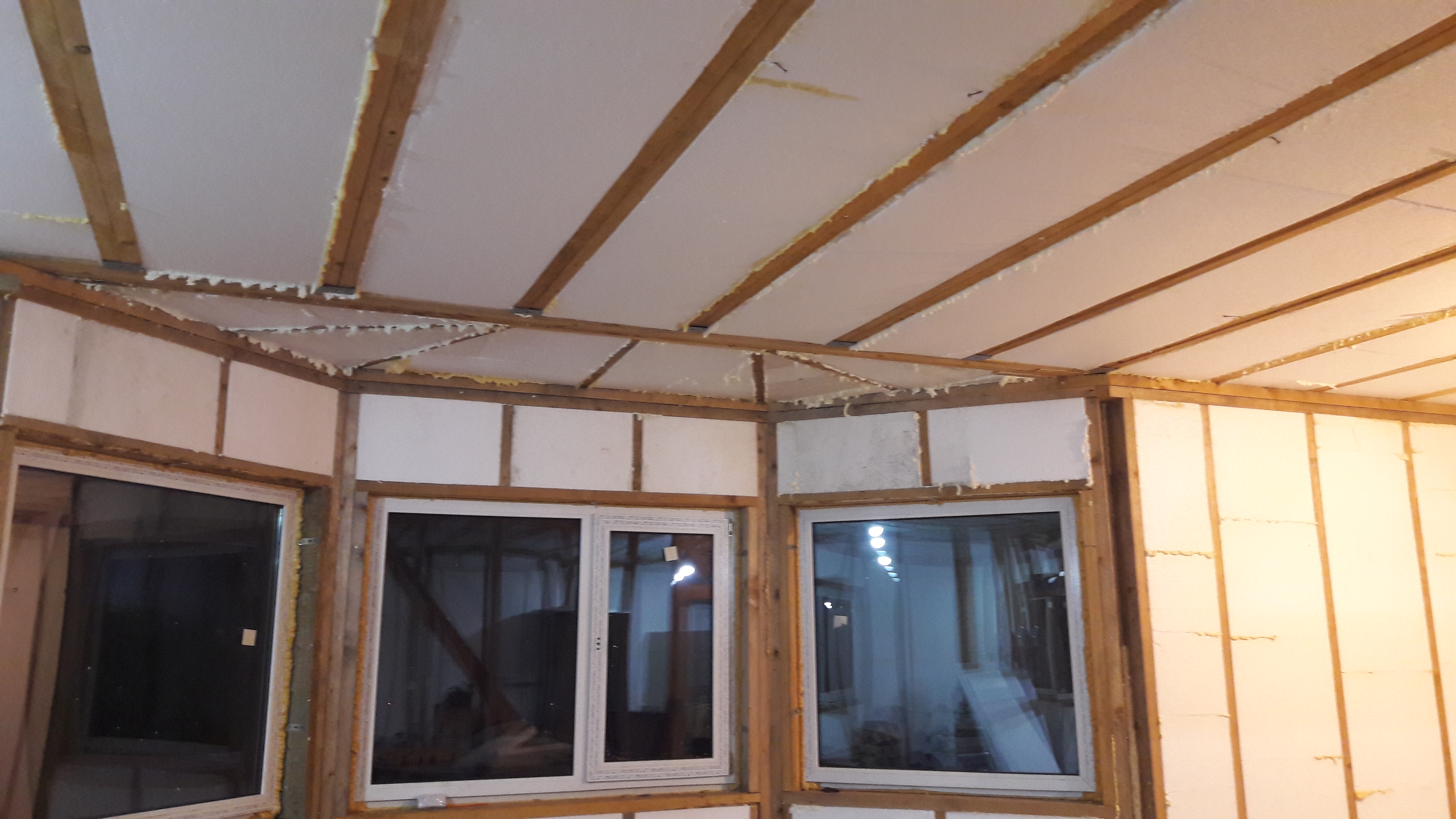 Утеплили эркер, остатки потолка, углы и мелкие остатки. Падла, пена кончилась, ящик брал, и кончилась. Подговняла конкретно. Сгонял в ближайший магазин, там один баллон последний какой-то непонятной пены... епрст. Короче не хватило. Не пропенил до конца потолки одной половины дома.
