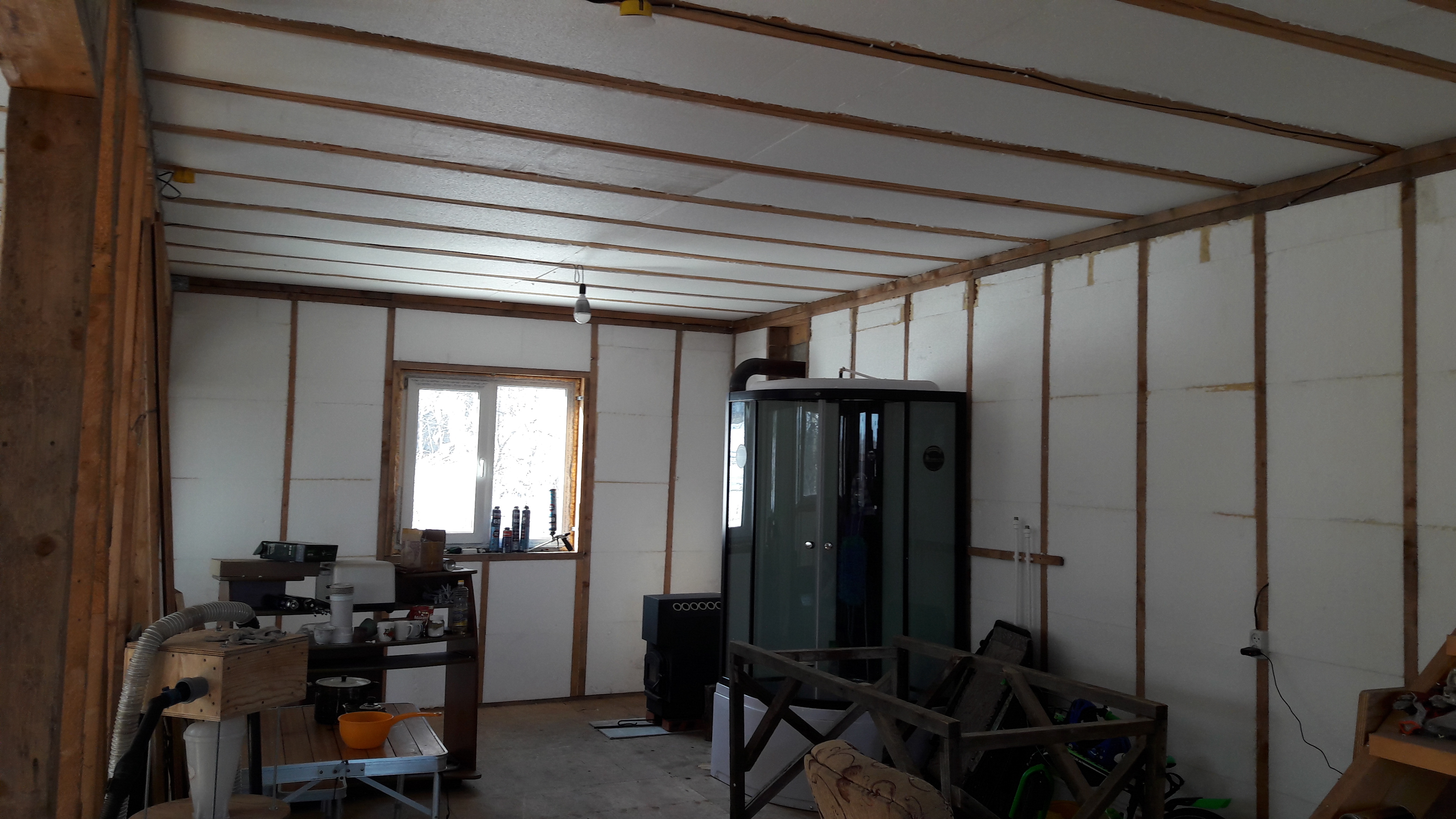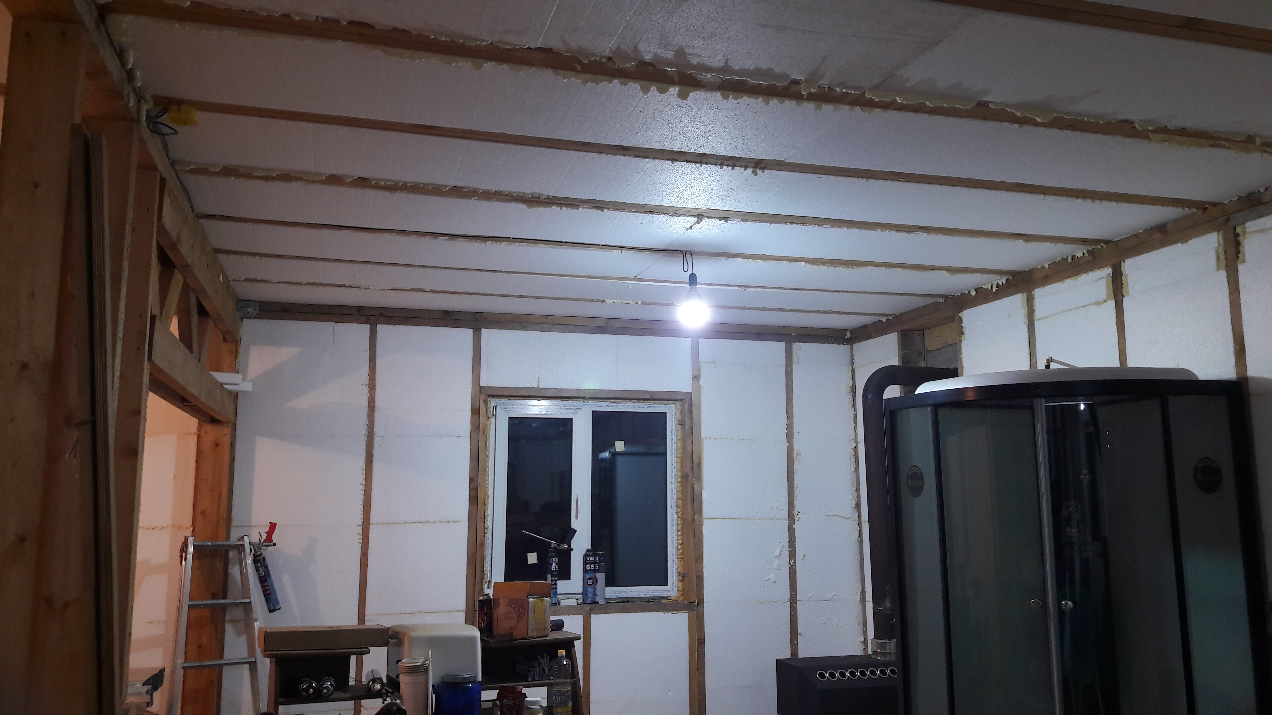 А, еще забыл, купил полиэтилен 200 мкм. Думали затянуть уже, но пена подговняла, пиво не дало... короче звезды не сложились