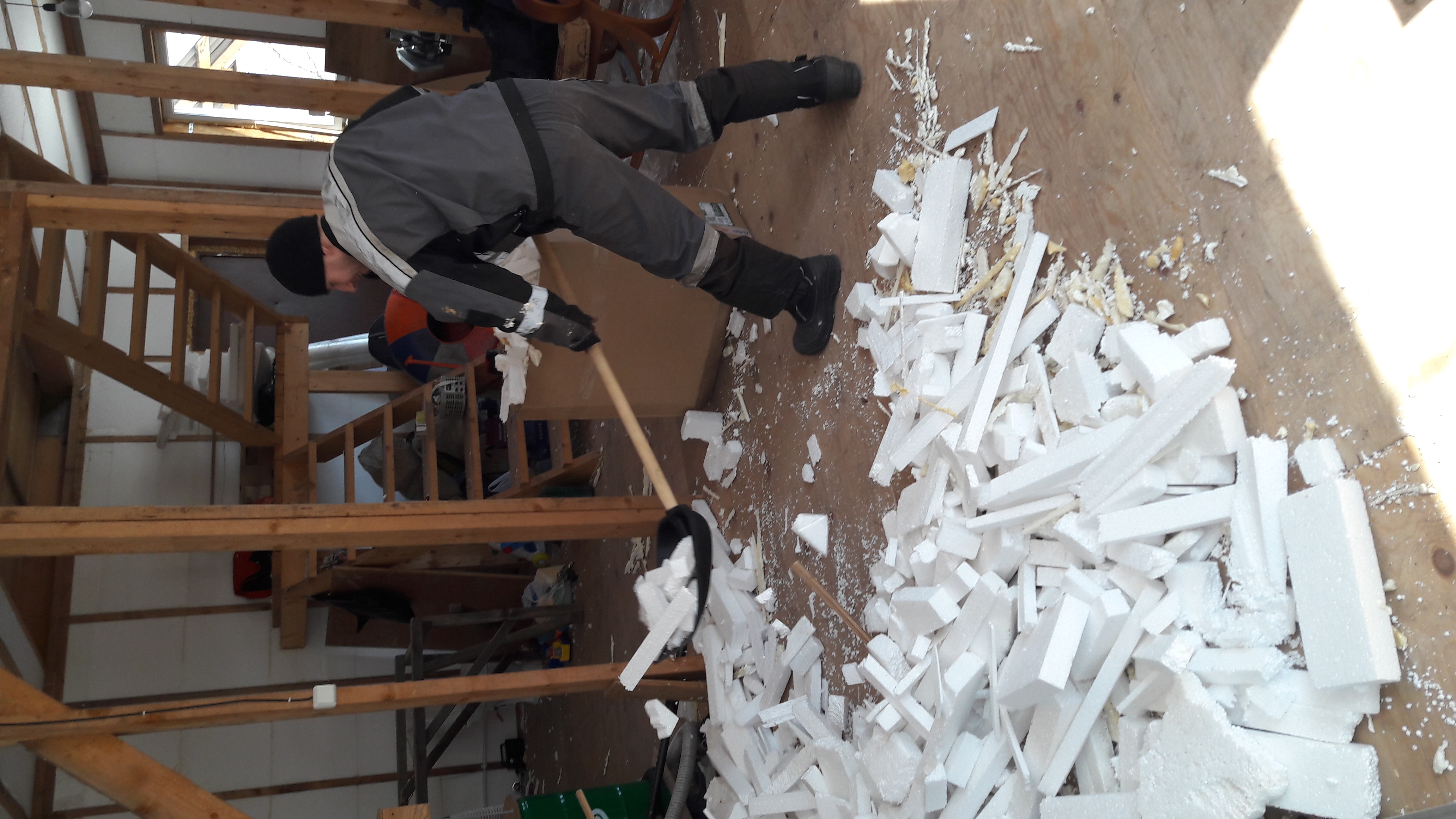 Это друг лопатой убирает пенопласт ))) Ну и результат Ну и замученнные, и напитые пива довольные вернулись домой.
