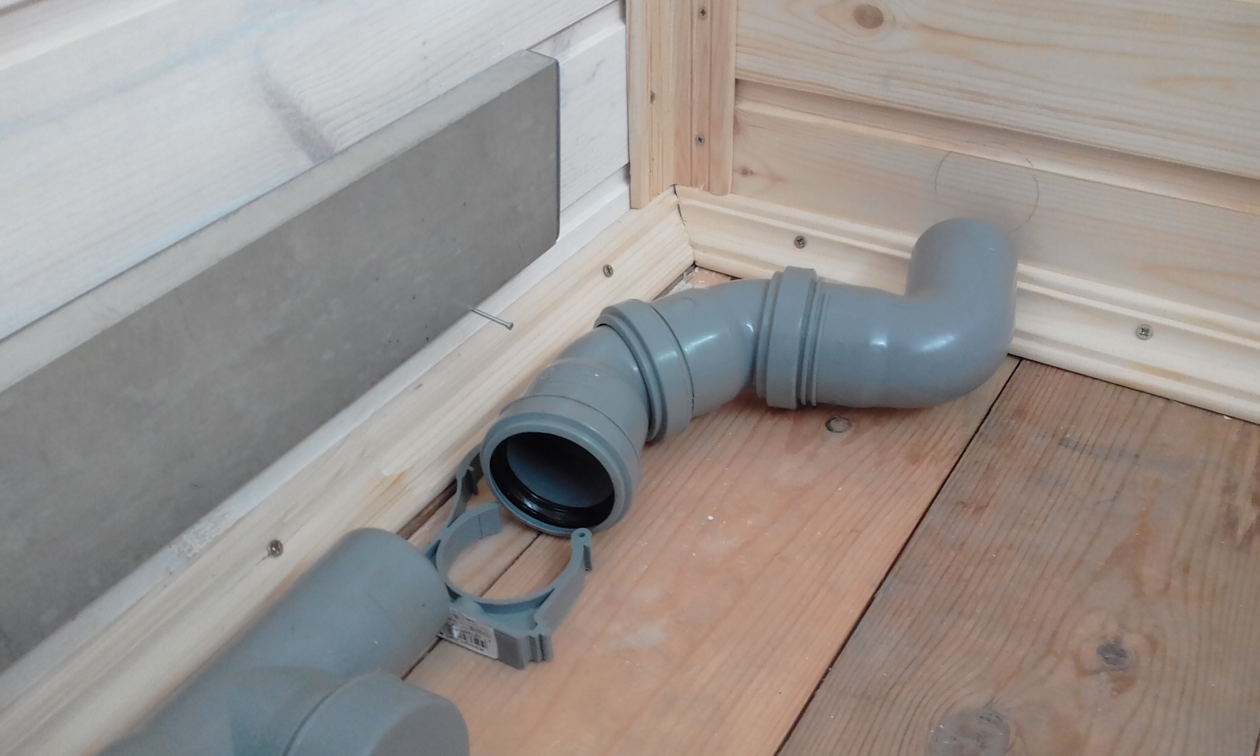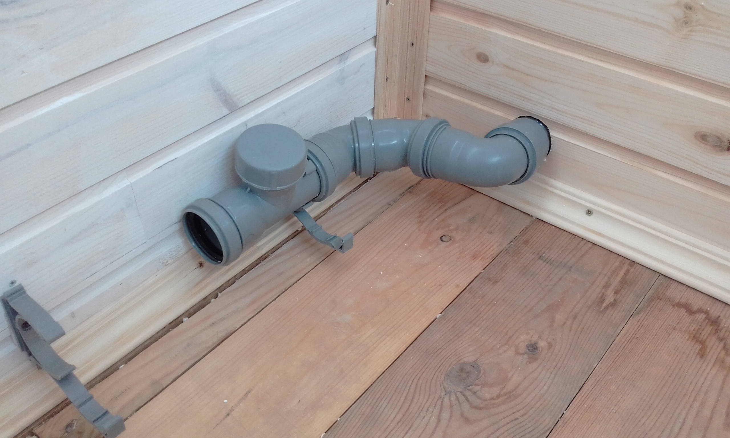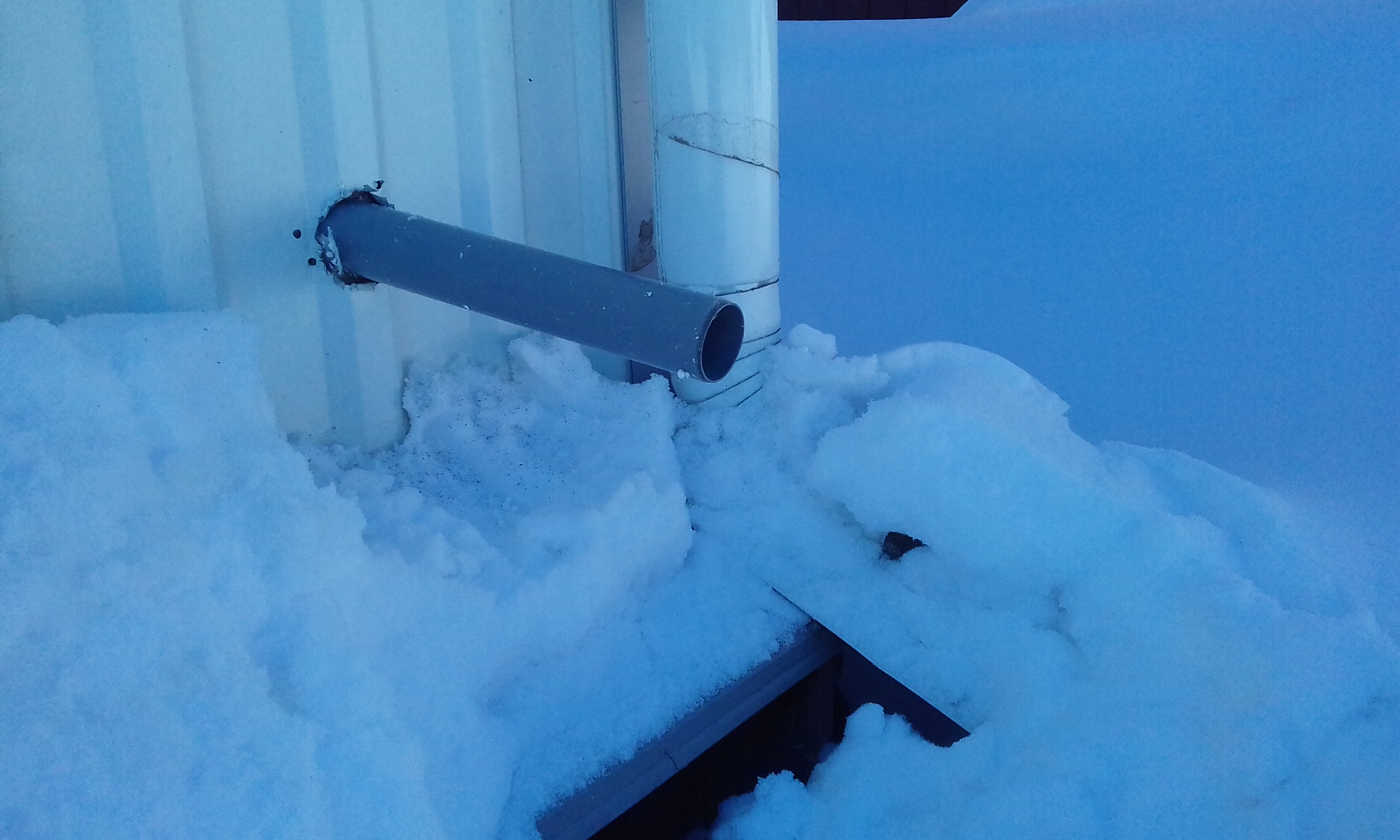 Просверил отверстие в наружной стене. Вставил выводную трубу и начал собирать трассу.