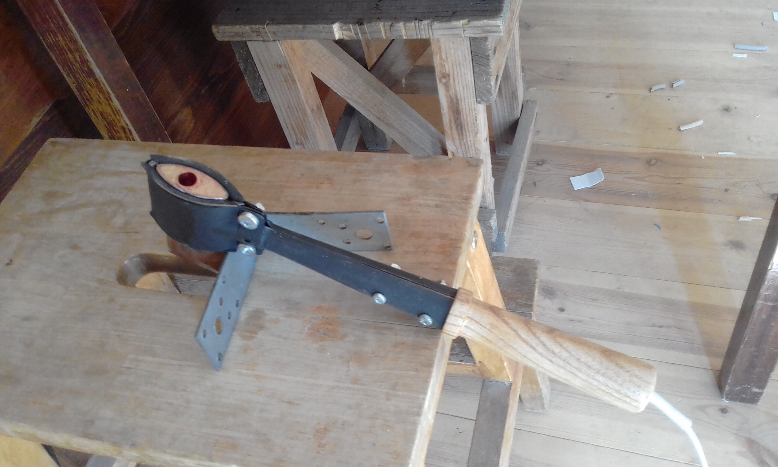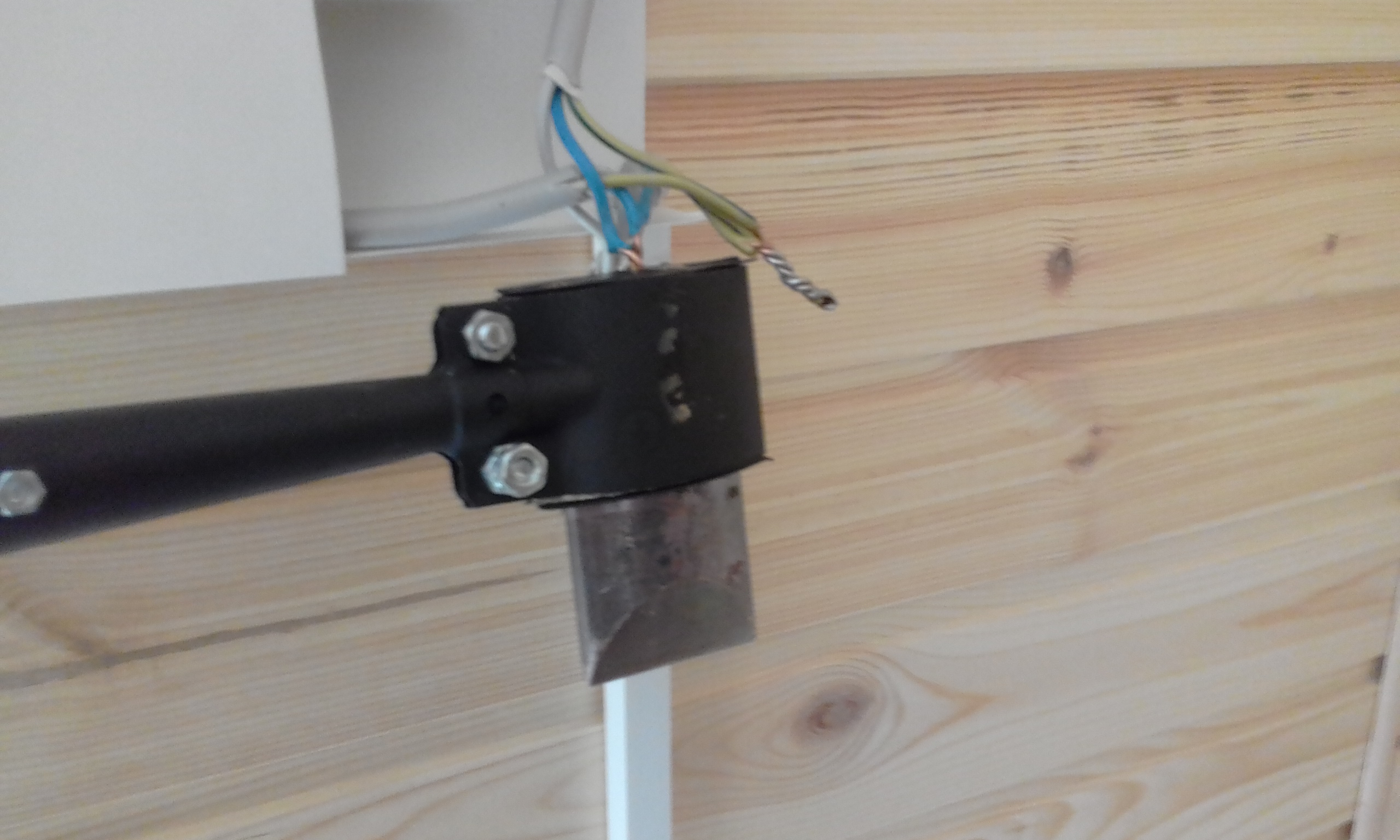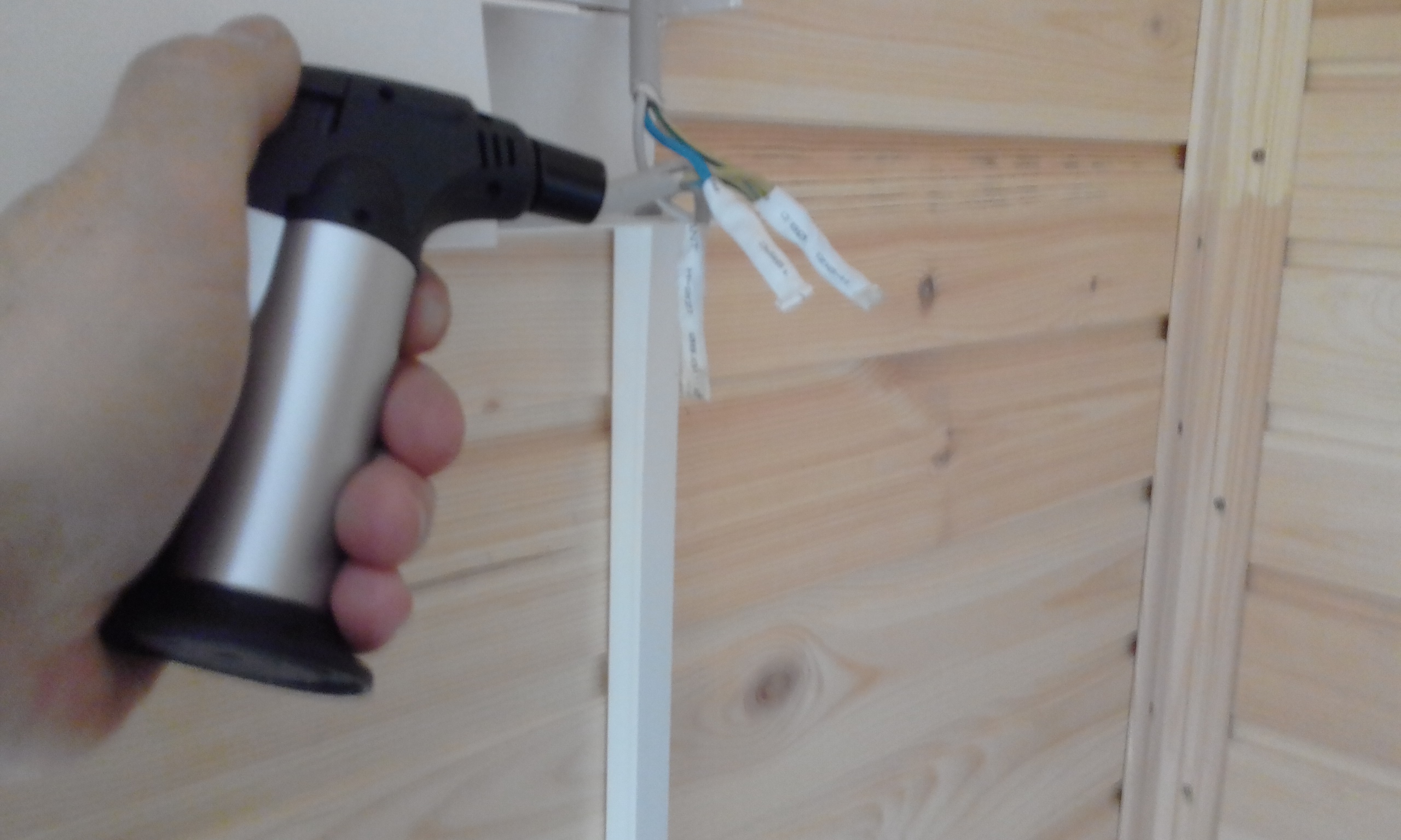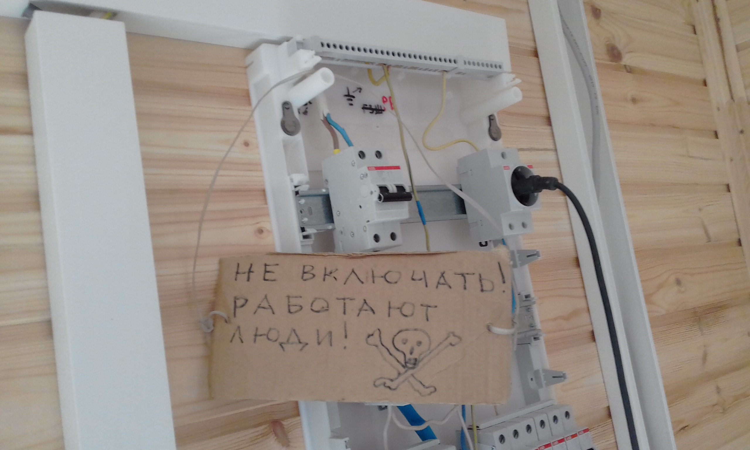 Продолжаю дерзать с элетро-монтажными работами. Плакатик- напоминалка, чтобы не лазил куда не надо. Сверлю отверстие-ванночку в паяльнике-топорике.