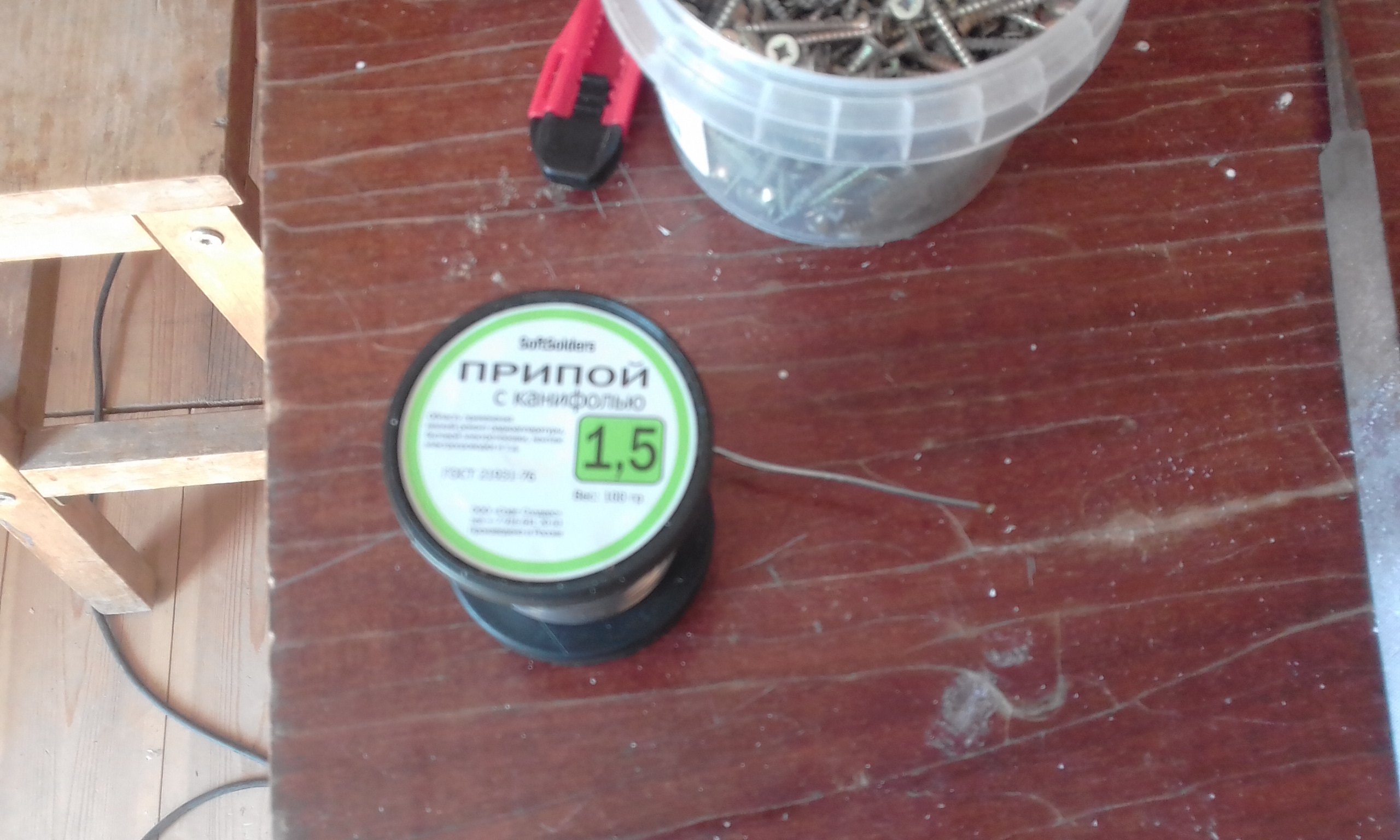 Они забраковали жидкий флюс для алюминия и всех металлов. Дима советует канифоль на спирту, но недосуг заехать на рынок или в магазин. А сосновую канифоль и припой с канифолью одобрили. По их чётким рекомендациям приступил к пайке скруток.