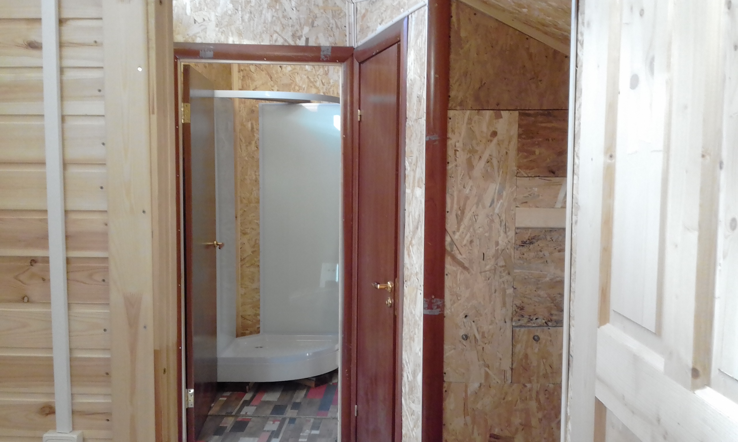 Вдвоём с женой напряглись и водрузили душевую кабину в проектное положение.