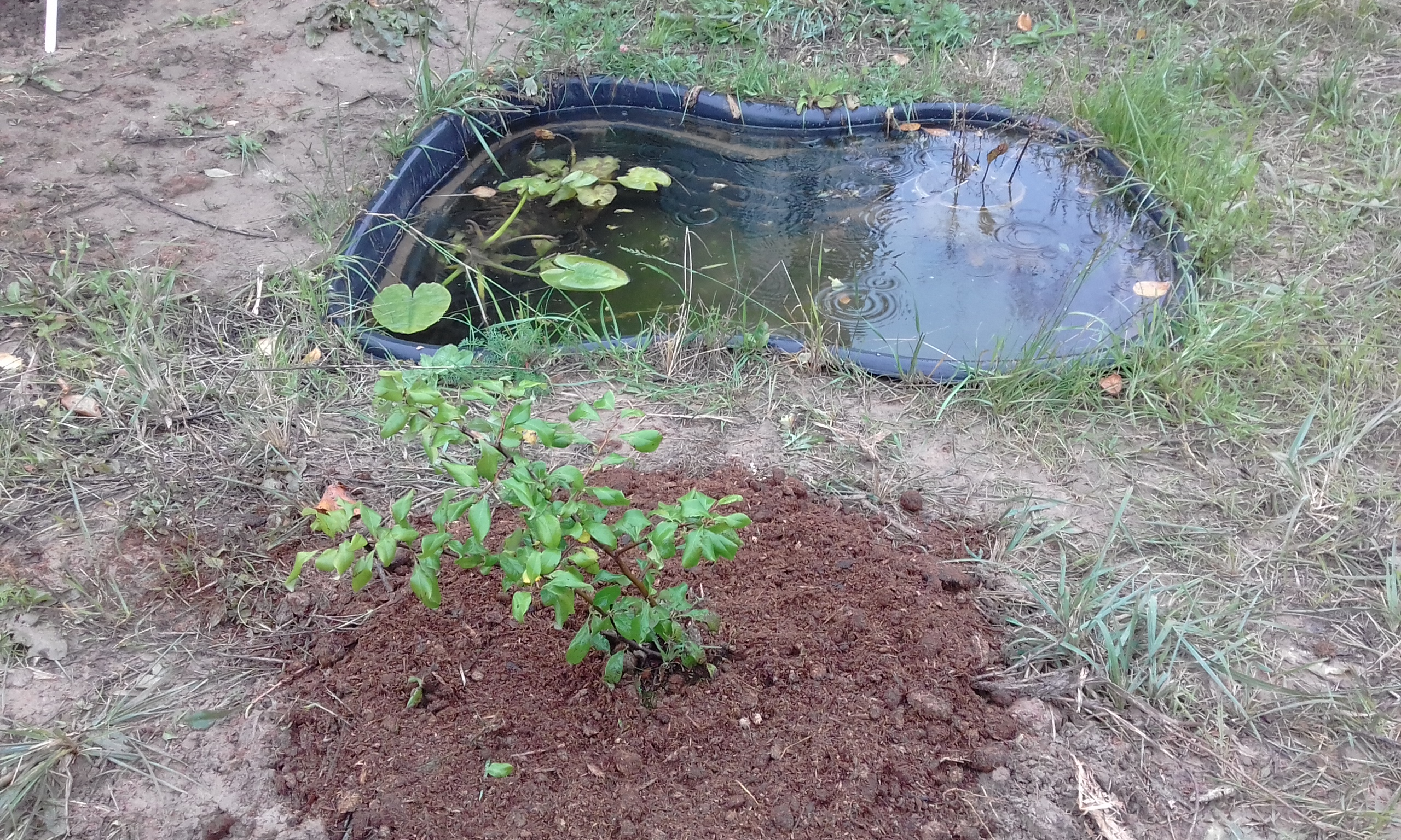 Виноград каберне - 2 шт., яблоня штрифлинг - 1 шт., груша русская красавица - 1 шт., гортензия - 1 шт., жасмин - 1 шт., магнолия - 1 шт., японская айва розовая - 1 шт. и даже высадил прижившийся черенок черёмухи - 1 шт. А в прудике посадил кувшинку, привез от тещи.