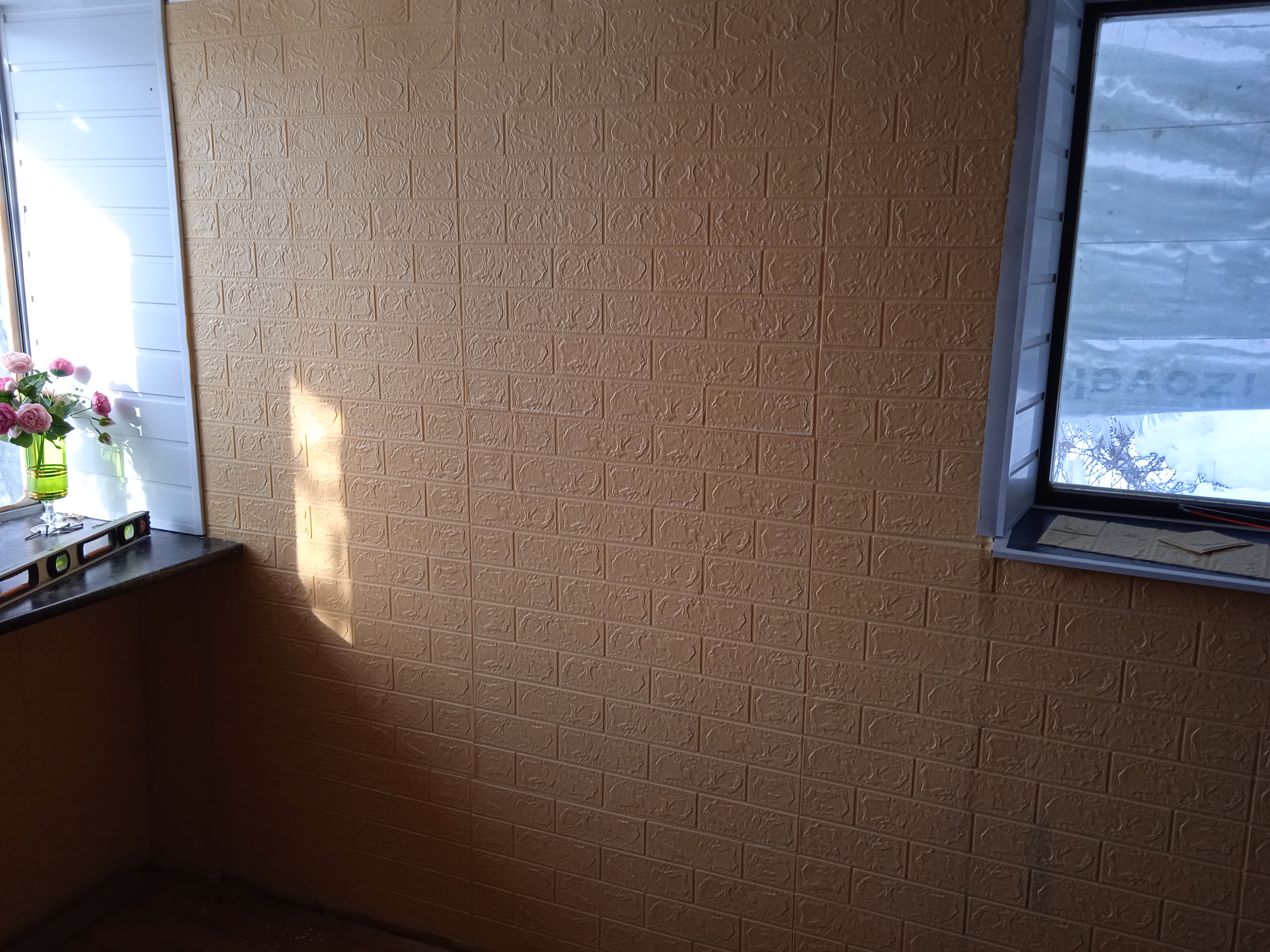 Переклеили всю комнату. Это клеющиеся обои из Китая.Листы 70 х78 см.Клеить их на стены одно удовольствие.