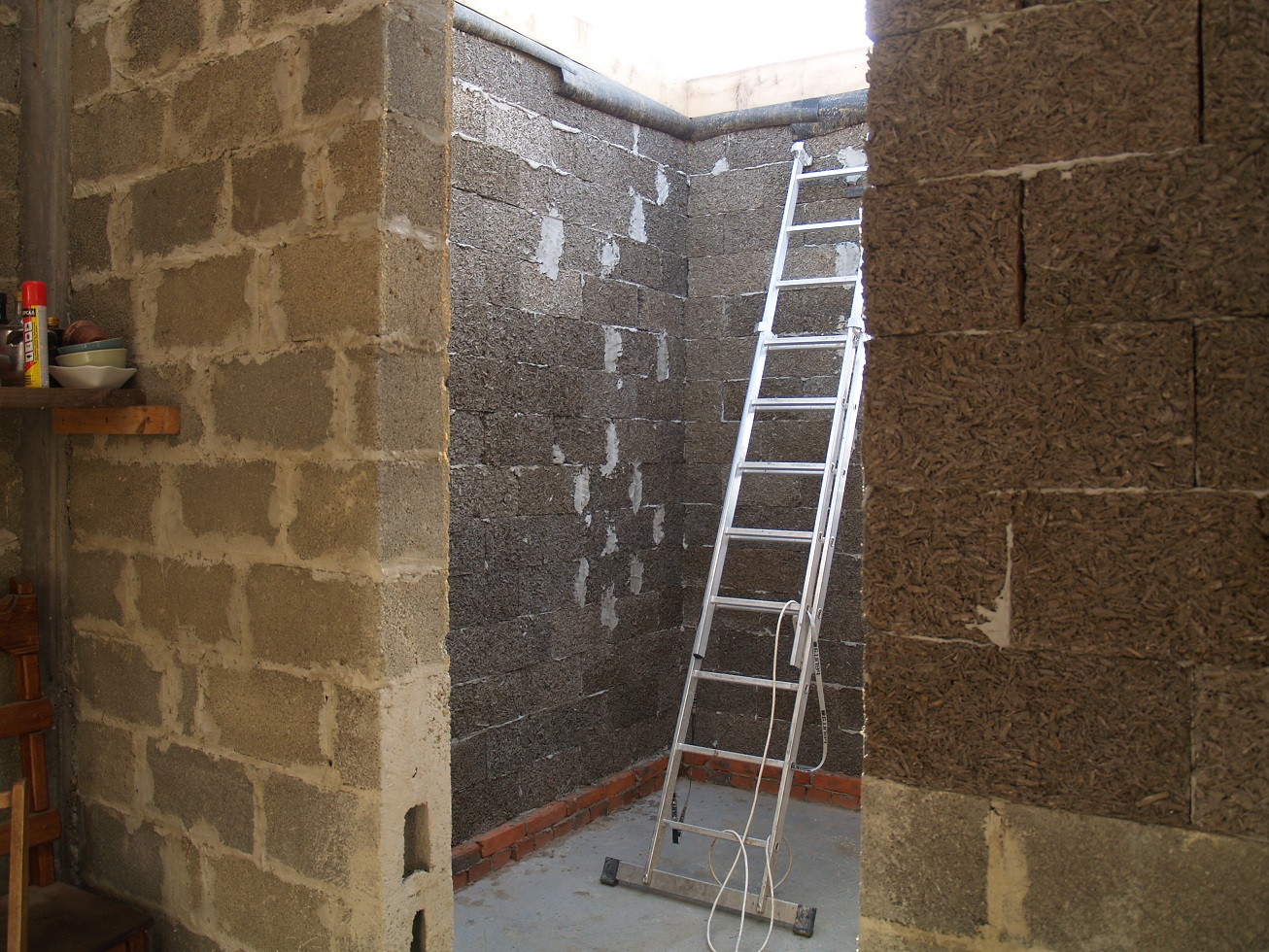 Разобрала пристройку (нанимала на демонтаж) и пристроила кухню и с/у из арболитовых блоков. Снаружи закатала 3000 клеем по фасадной сетке=гидроизоляция.