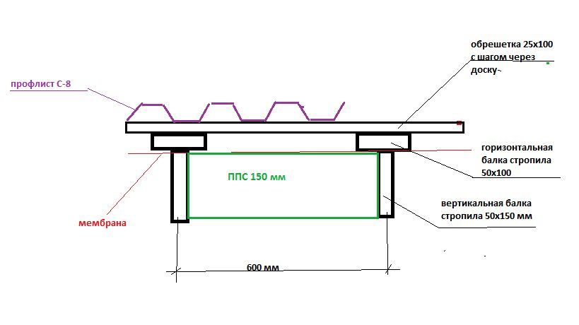 Эти 2,5 см как мне кажется, будут играть решающую роль при конвективном движении воздуха при нагреве. Ничего покровного слоя не касается. Контр-обрешетка позволяет выровнять стропилы, Они далеко не все идеальные. Стропилину строгать сложней чем рейку ;). Кстати рейку строгал топором.