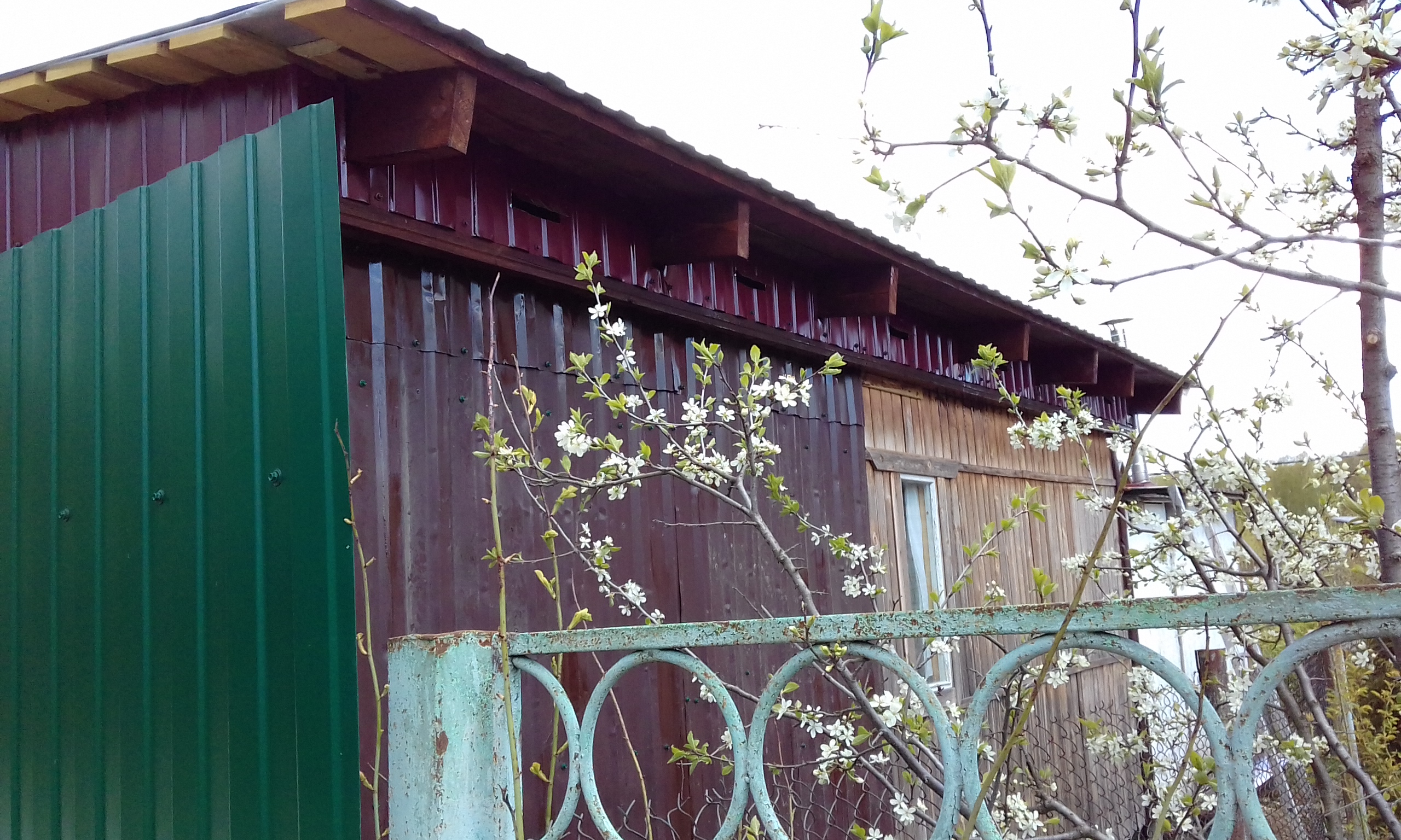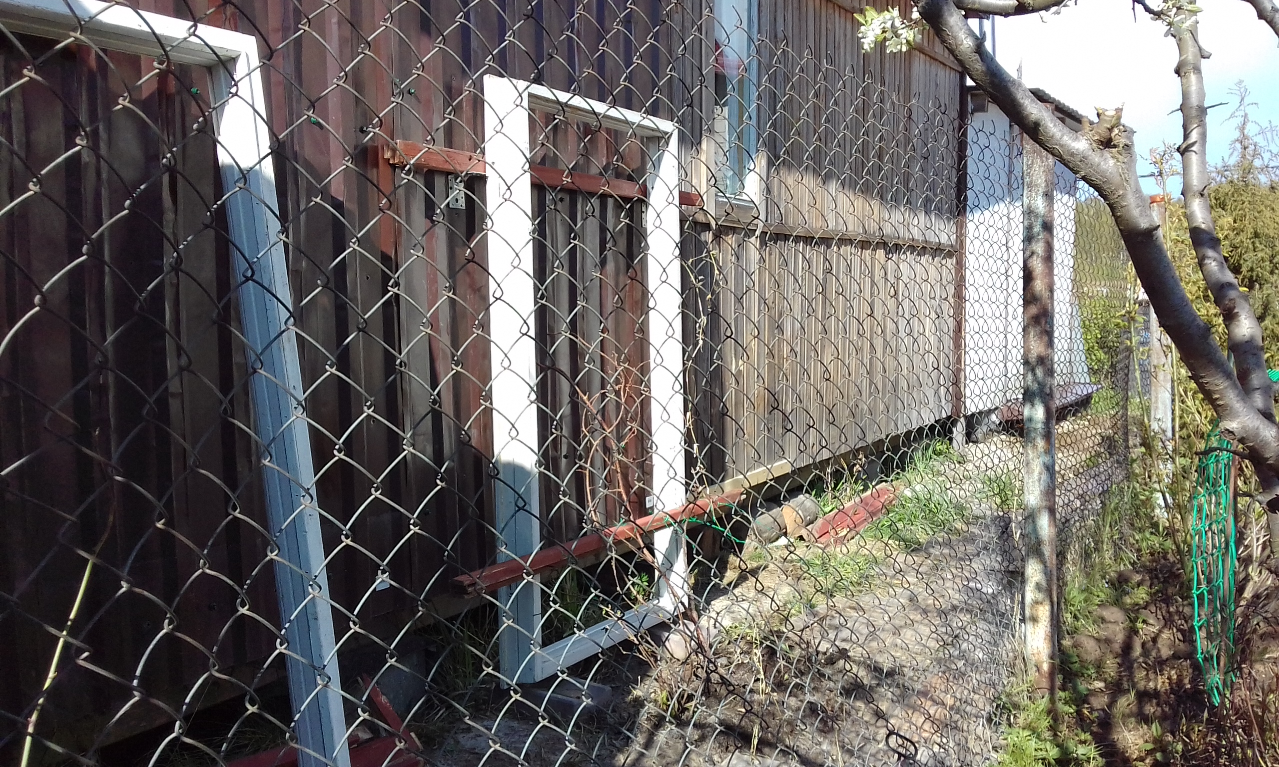 Видишь, я посадил тёщин лимонник под стеной. Он как плющ разрастается, надеюсь что притенит южную стену.