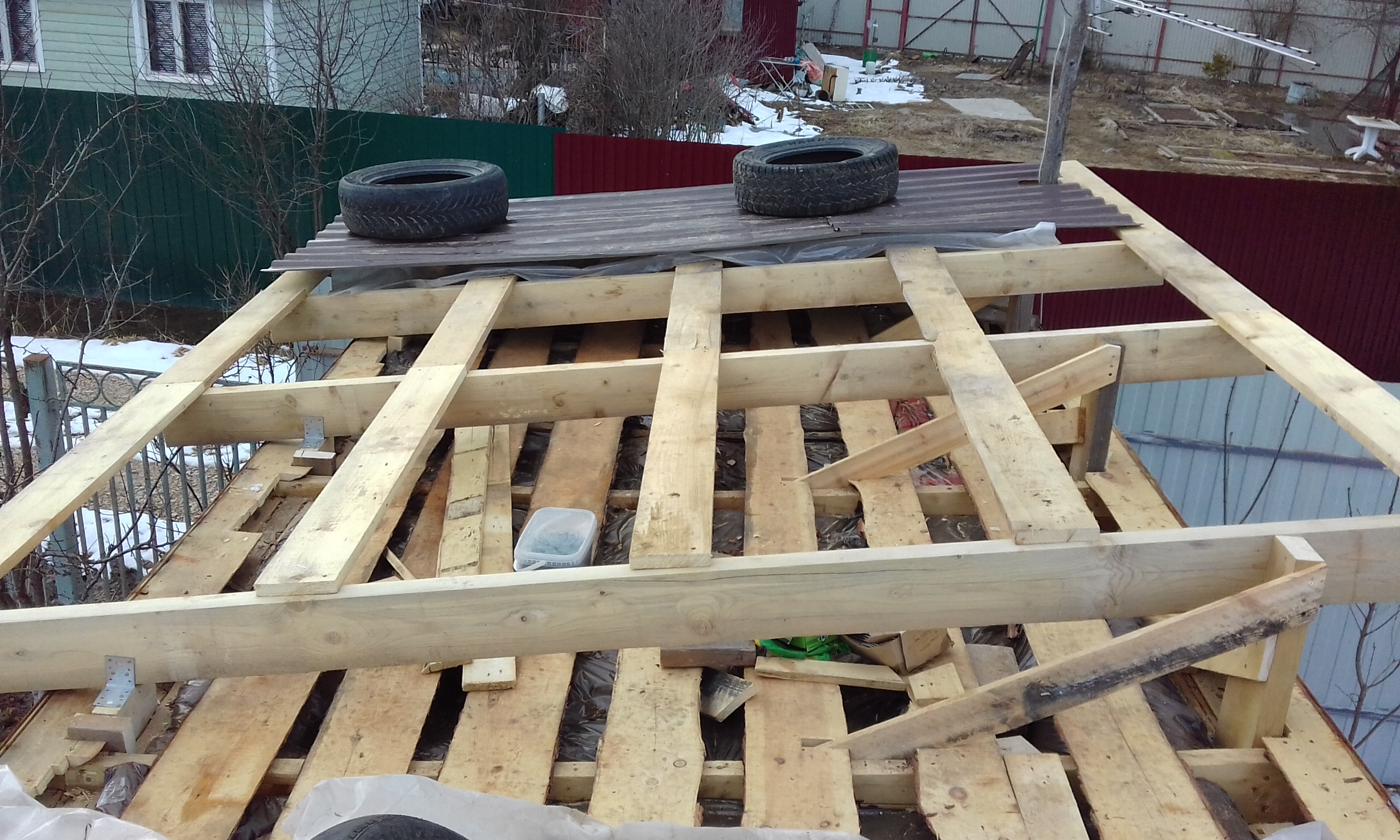 Ещё две стропилы установил.