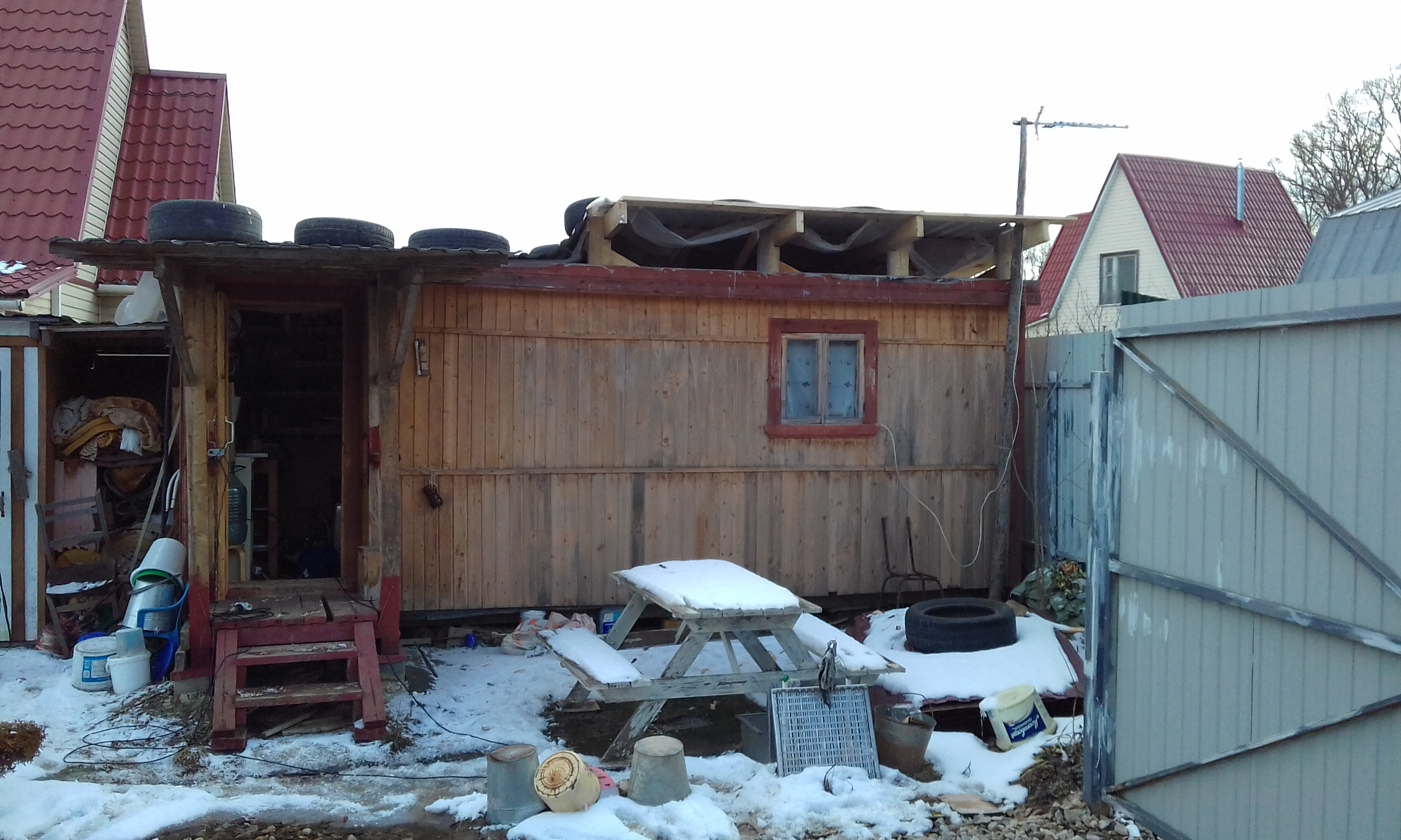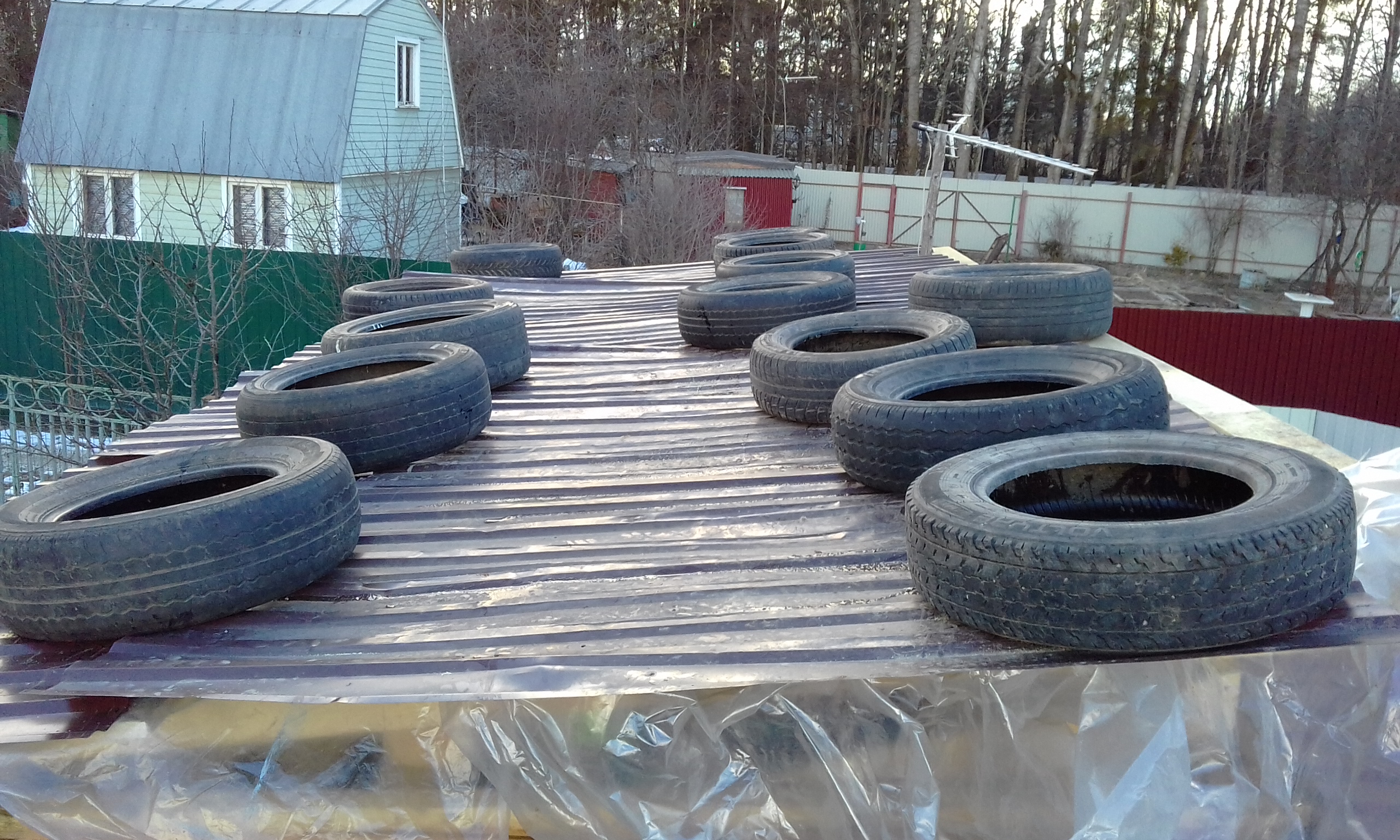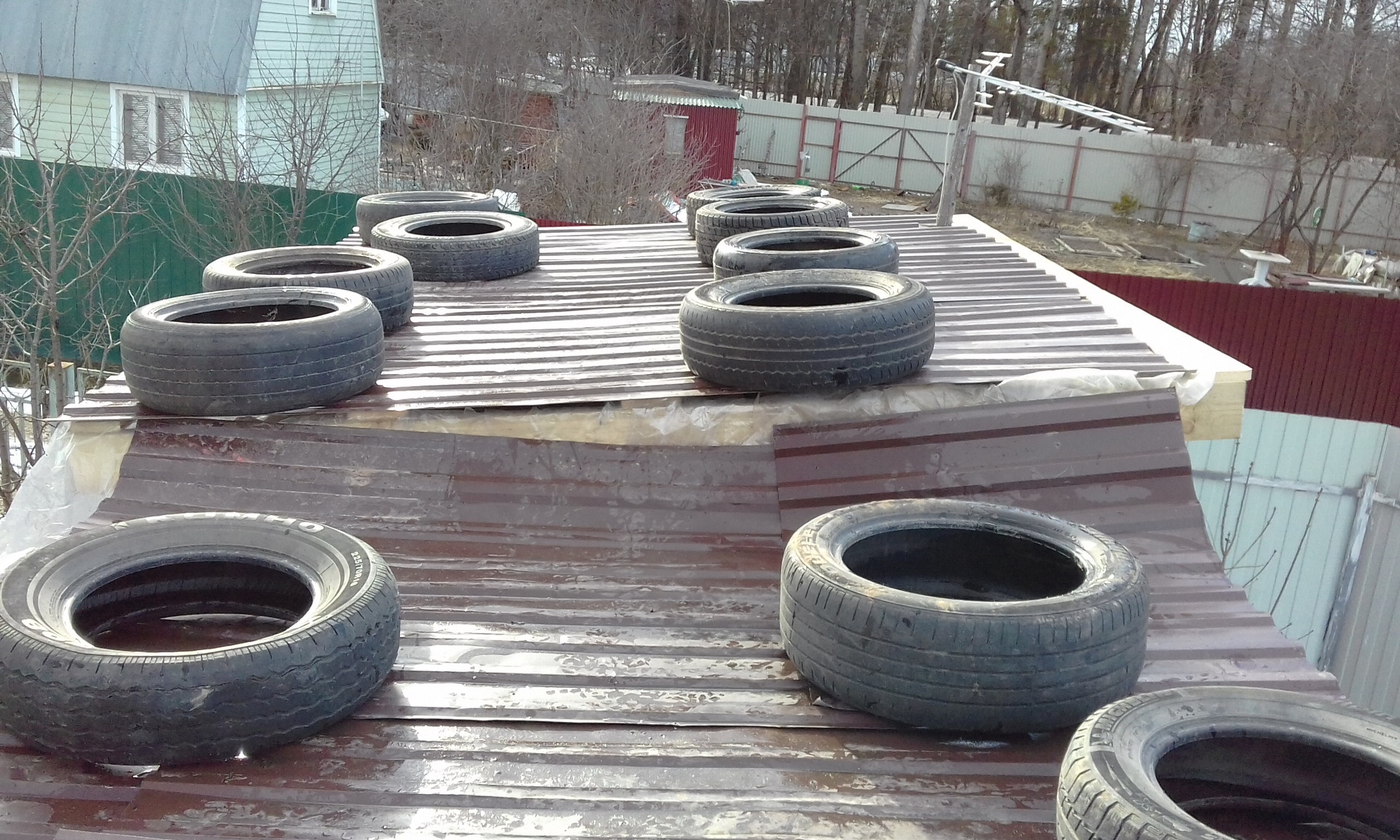 Осенью начала течь, брательник лазил по ней заплатки ставил, сказал что зиму вряд-ли переживет - вся в трещинах на краях обрешотки.