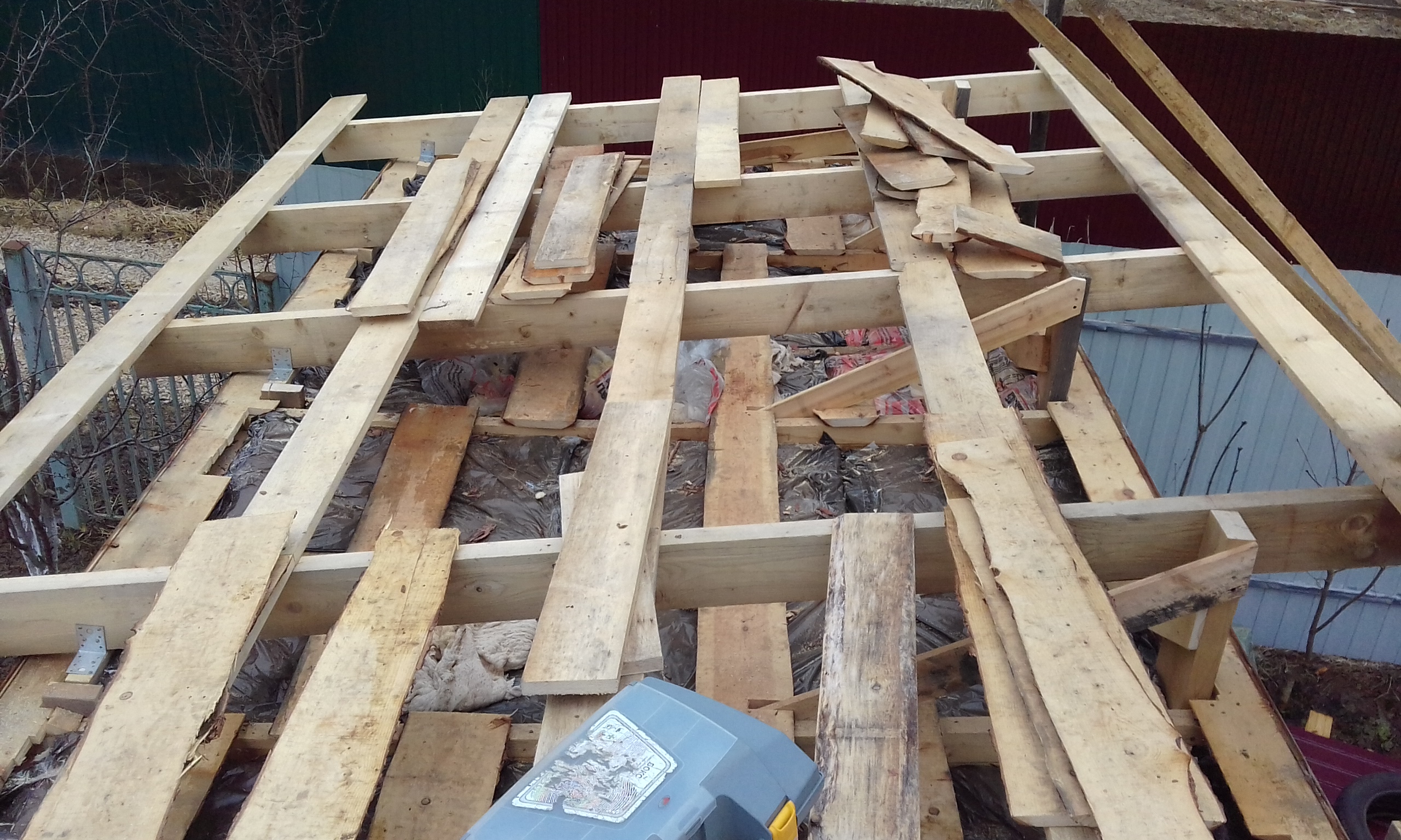 Вчерне настелил новую обрешётку.