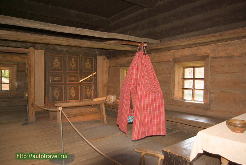 У классической избы потолка не было- утепленная крыша мансардного типа, да и топилась русская печь по-черному.