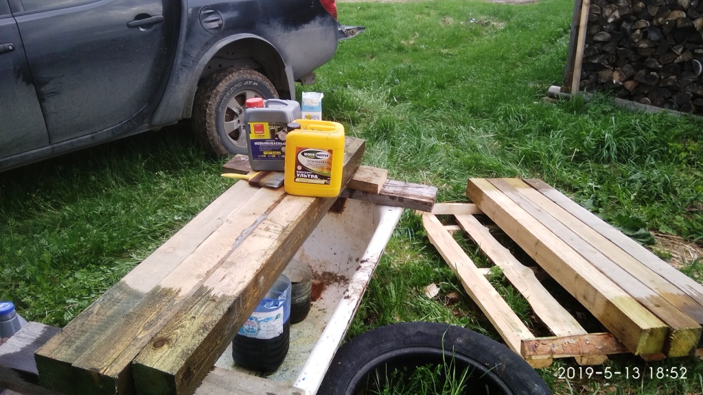Потом укладывал столбы в ряд на досках ванны и антисептировал переворачивая , после складывал на поддон по 5 в ряд на подкладки для просушки и антисептировал повторно,