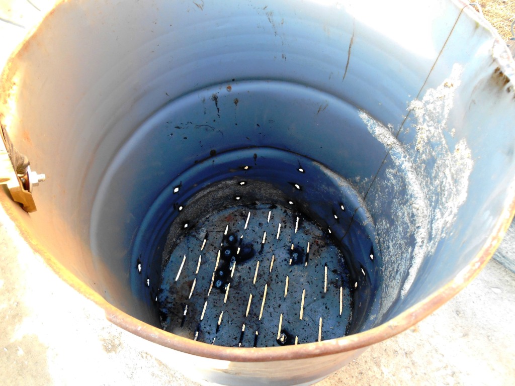 У бочек отгорает низ и его есть смысл делать из всего железа. При этом дно, как ты видишь, воду пропускает, но ядро горения удерживается в чаше диска и на землю не осыпается.Дальше будет так: