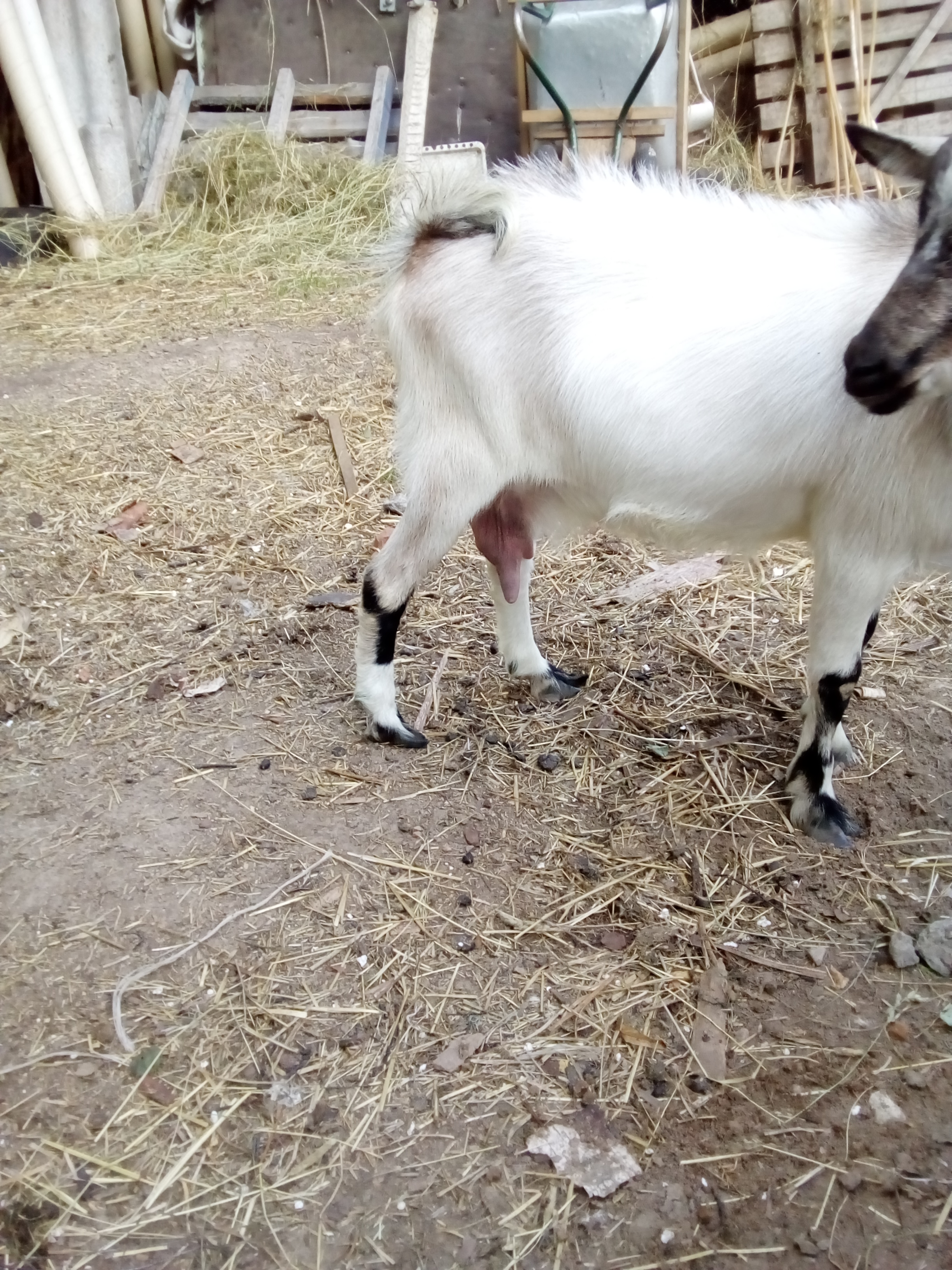 Сегодня моя новая коза Маша захотела замуж..Стала она к козликам приставать, а тот который январский до этого дела с бабами не имел, его раньше не подпускали к ним. Карлик же мал росточком, и, хотя и прыгал на нее. но безуспешно. С одной стороны - маловат, с другой стороны альпиец его гоняет от козы и сам не пользуется.