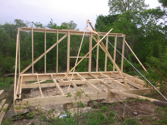 Просто я был на стройке один, стена шестиметровая, лес сырой, а поднимать надо! пришлось думать.