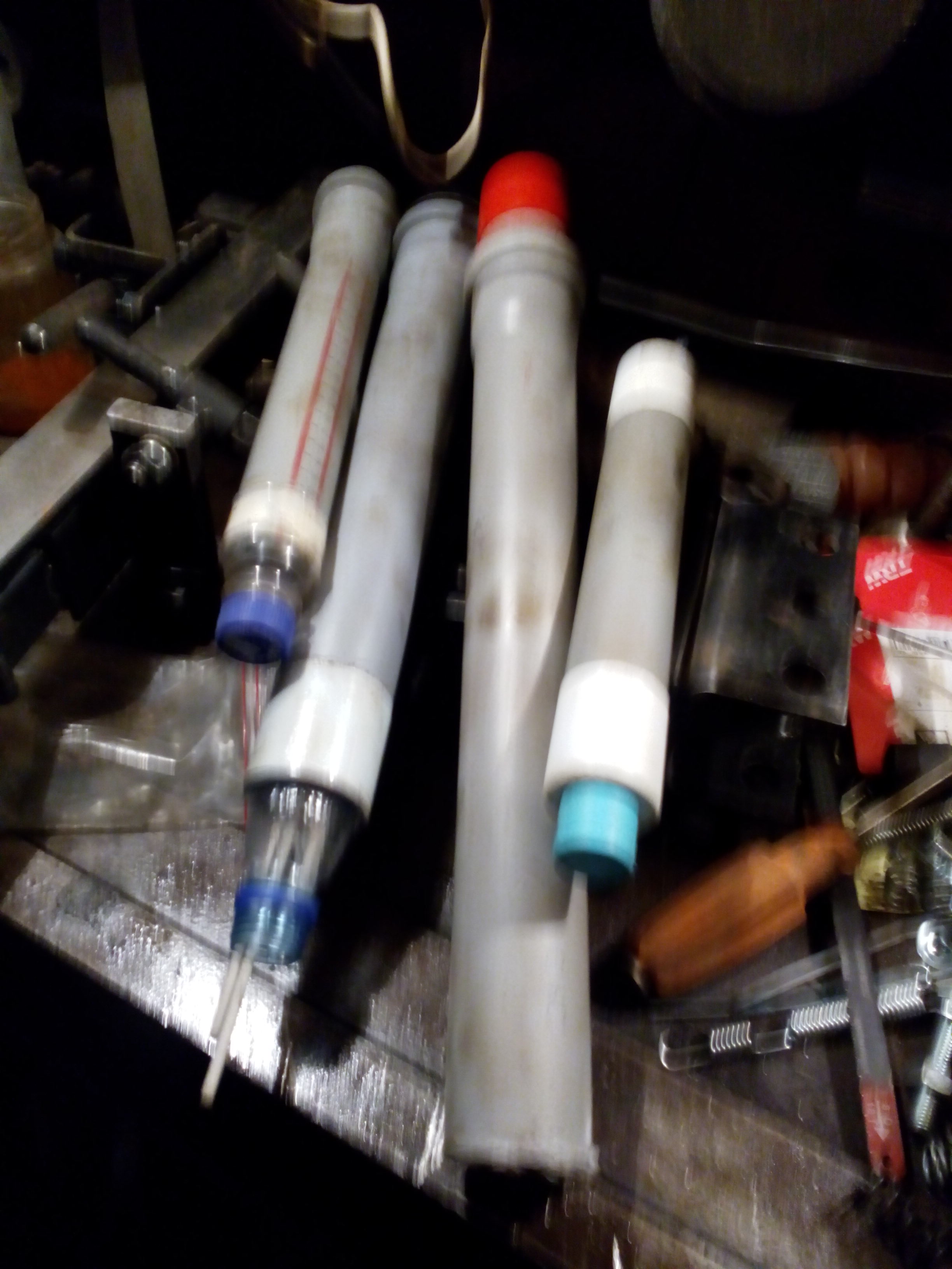 Хранение электродов разумнее в герметичной таре. Если подмокли, то в печь после протопки и до утра. Герметичную тару делаю из кан. труб диаметром 50-110, горловой и донной части пластмассовых бутылок, фена и двухстороннего скотча. Между трубой и бутылкой наматываю виток двустороннего толстого скотча с каждой стороны. Бутылки при нагреве феном обтягивают трубу плотно, а скотч обеспечивает герметичность и не дает сползать. Если же скотча нет, то снаружи простым после термоусадки. Им же приматываю бирку от электродов.