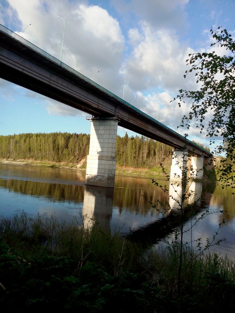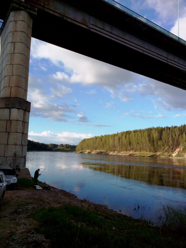 После работы выскочили на рыбалку на Сухону в район моста через Сухону в районе с. Нюксеница. Вода очень высокая как в половодье в мае и ничего не ловится-за четыре часа 2 поклевки и одна плотвичка на троих, но виды роскошные.