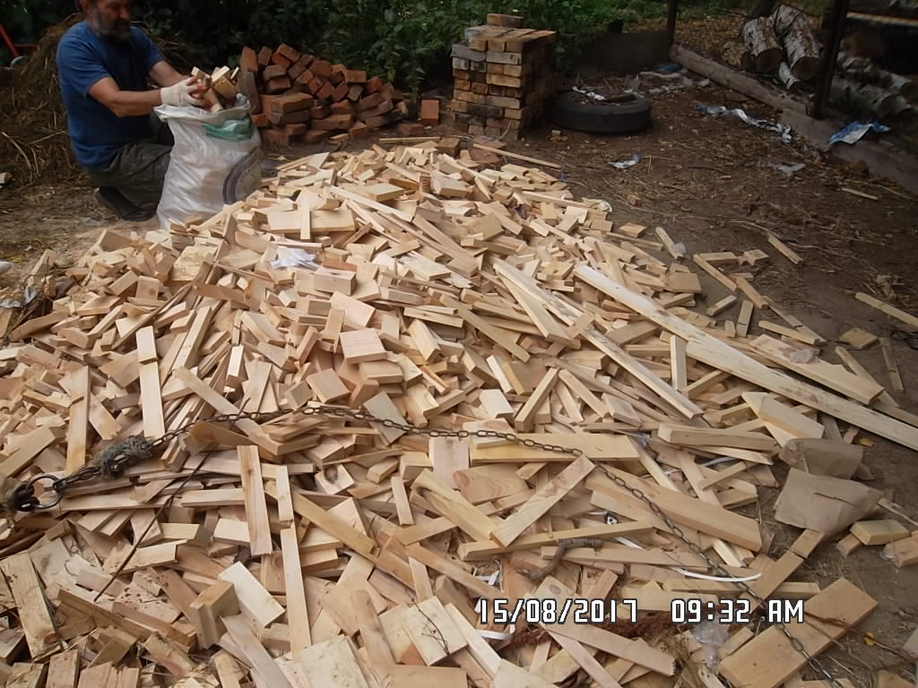 Вот такие дровишки привезли нам последний раз. Целый самосвал за 2000 р. С мебельной фабрики.Чтобы протопить баню нужно всего 2 десятилитровых ведра этих дров.