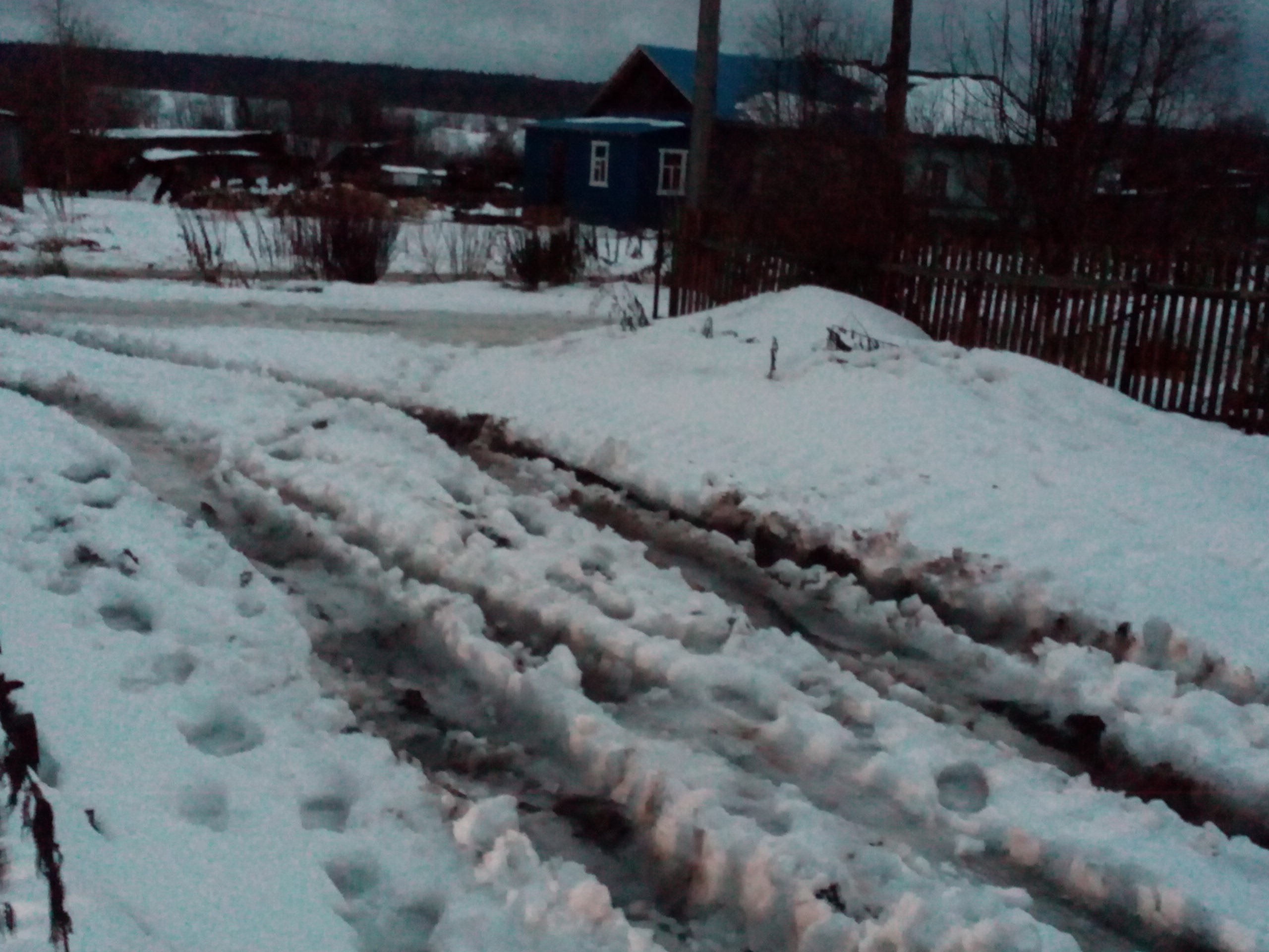 Вчера ездил на дачу. Первые сорок километров чисто, на улице +5, а после Грязовца как в сказке: чем дальше, тем страньше ( все 32 км гнал под 60 на полном приводе, да еще и с посвистом обгонял): ледяная колея с водой, местами грибаки, на обочины лучше и не соваться, торможение только двигателем, а в деревне на понижайке еле до дома доехал- таскало по дороге немилосердно.
