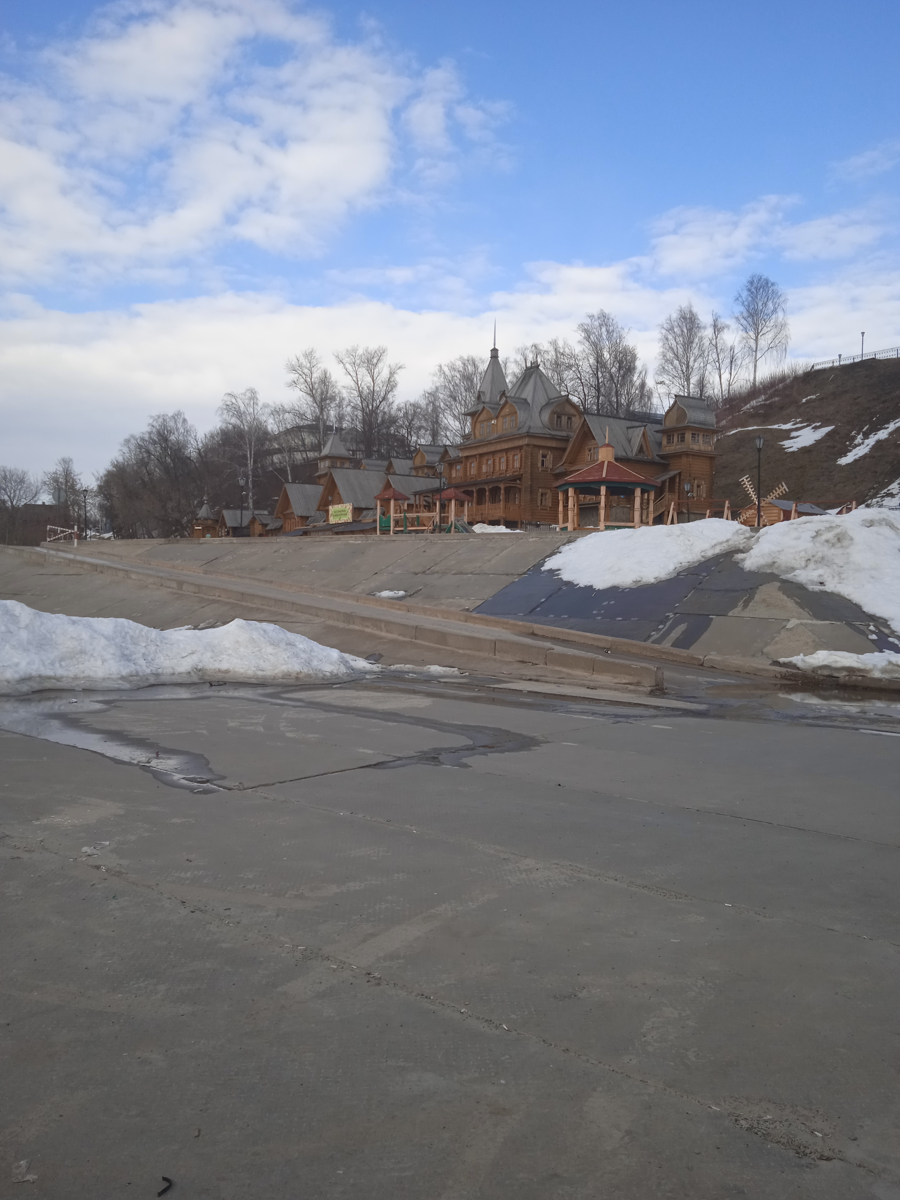 Сегодня ,проезжая по берегу Волги, наткнулись на огромный рыбацкий городок, который оказывается существует больше 50 лет.В три ряда на волжском берегу расположены различные стрения, самой замысловатой архитектуры, вплоть до старого автобуса на кирпичах. Городок этот тянется почти на полкилометра, если не больше. Есть теплые строения, в которых люди живут круглогодично, детские площадки с качелями и каруселями. баня из пленки , терасса с большим столом для общих мероприятий. Такой большой пионерский лагерь для взрослых. Мы побеседовали с рыбаком, который в этом лагере с детства, а ему уже под 60! Конечно, у них у всех есть квартиры в городе, но на лето они семьями переезжают в свой табор до осени. До города всего около 3 км, на работу ездят прямо отсюда.Летом здесь очень много народа, с детьми. с палатками, с собаками!
