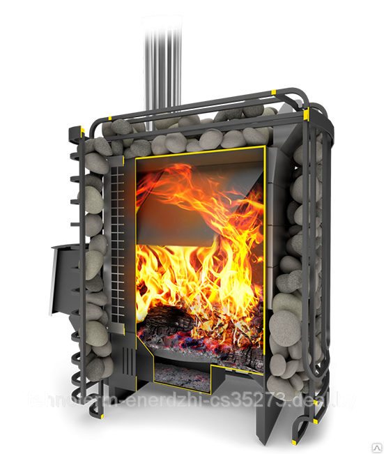 Продаваемые печи как я понимаю идут с камнями в кожухе и сверху подводится вода через каналы, для парообразования.