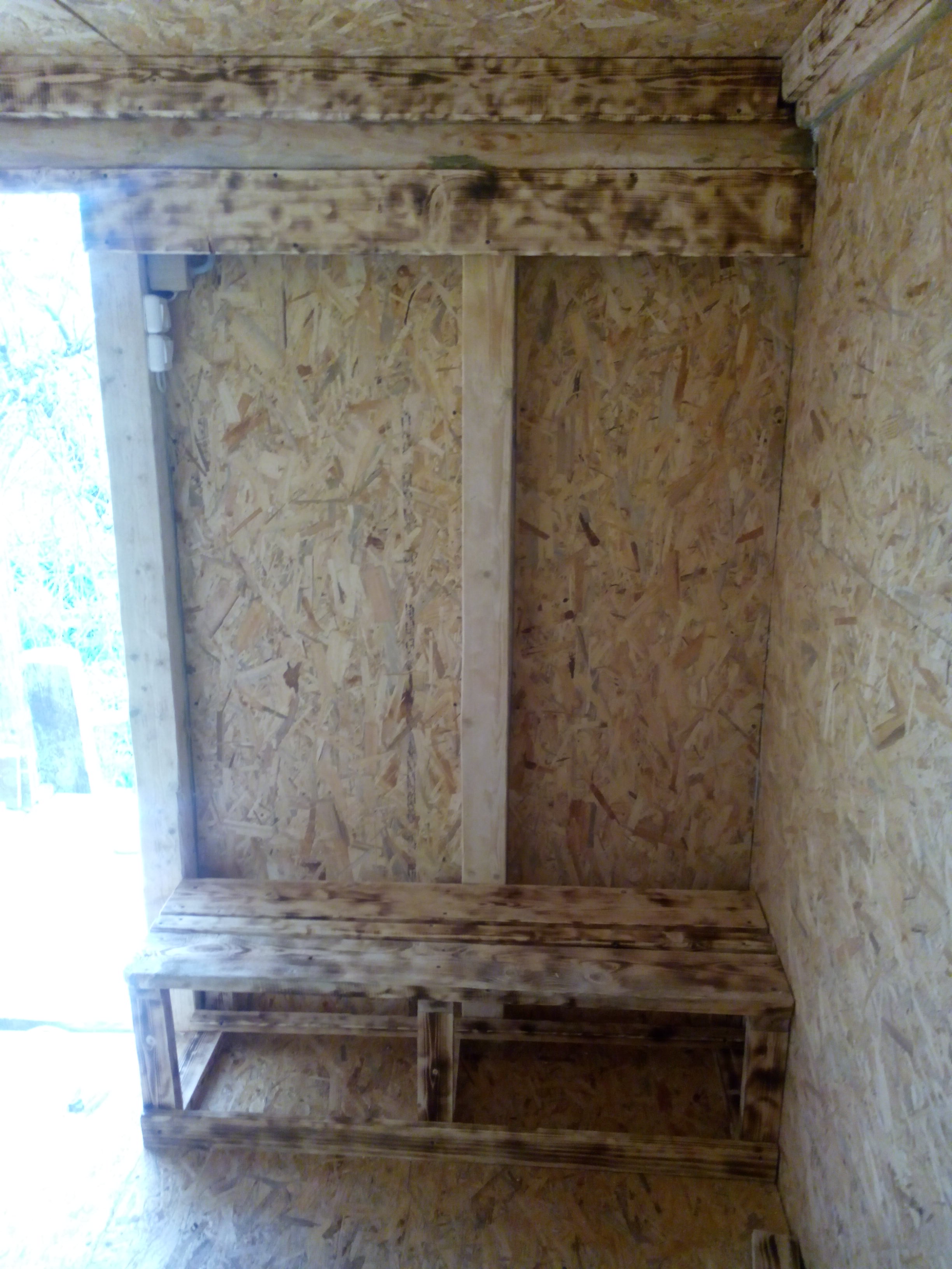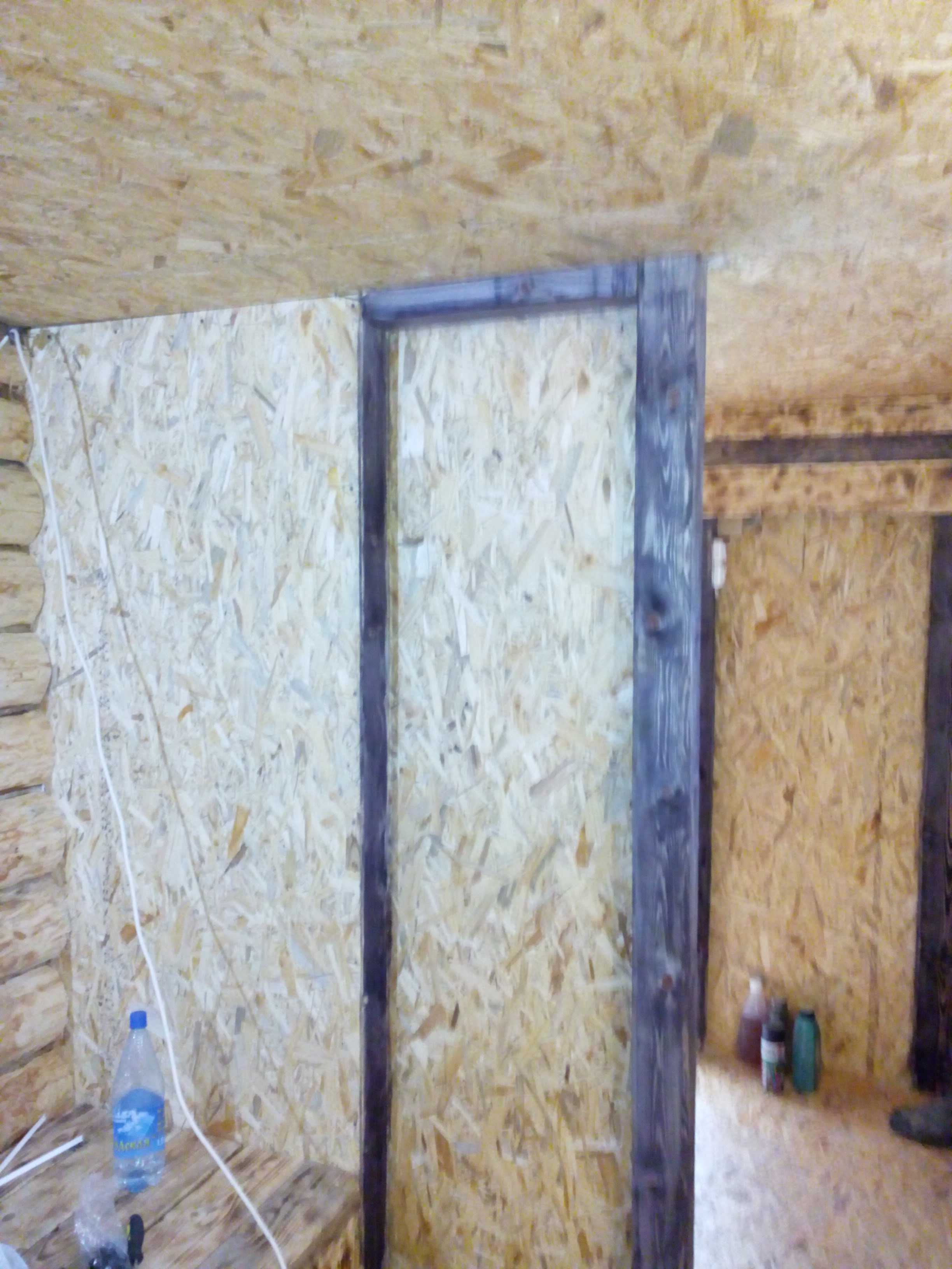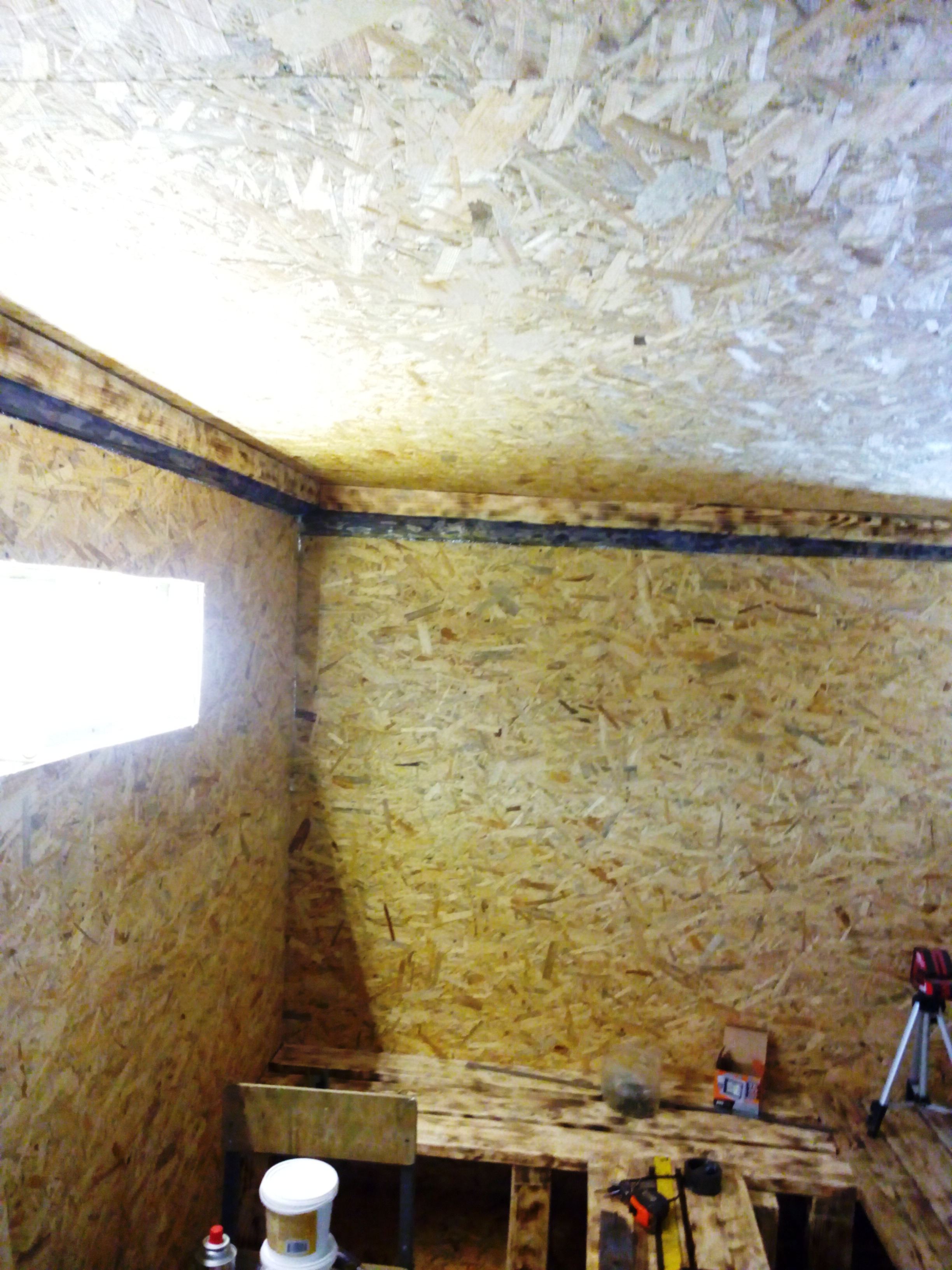 Хотелось бы похвастаться, да нечем: два дня лило как из ведра и с деревом поработать было невозможно. В субботу мало-мало поигрался с цветом и фактурой обработав торчащие балки браширом и покрыв их морилкой венге. Вышло неоднозначно. Дальше посмотрим. Так же попробовал оттонировать им же ОСБ. Вышло... что вышло