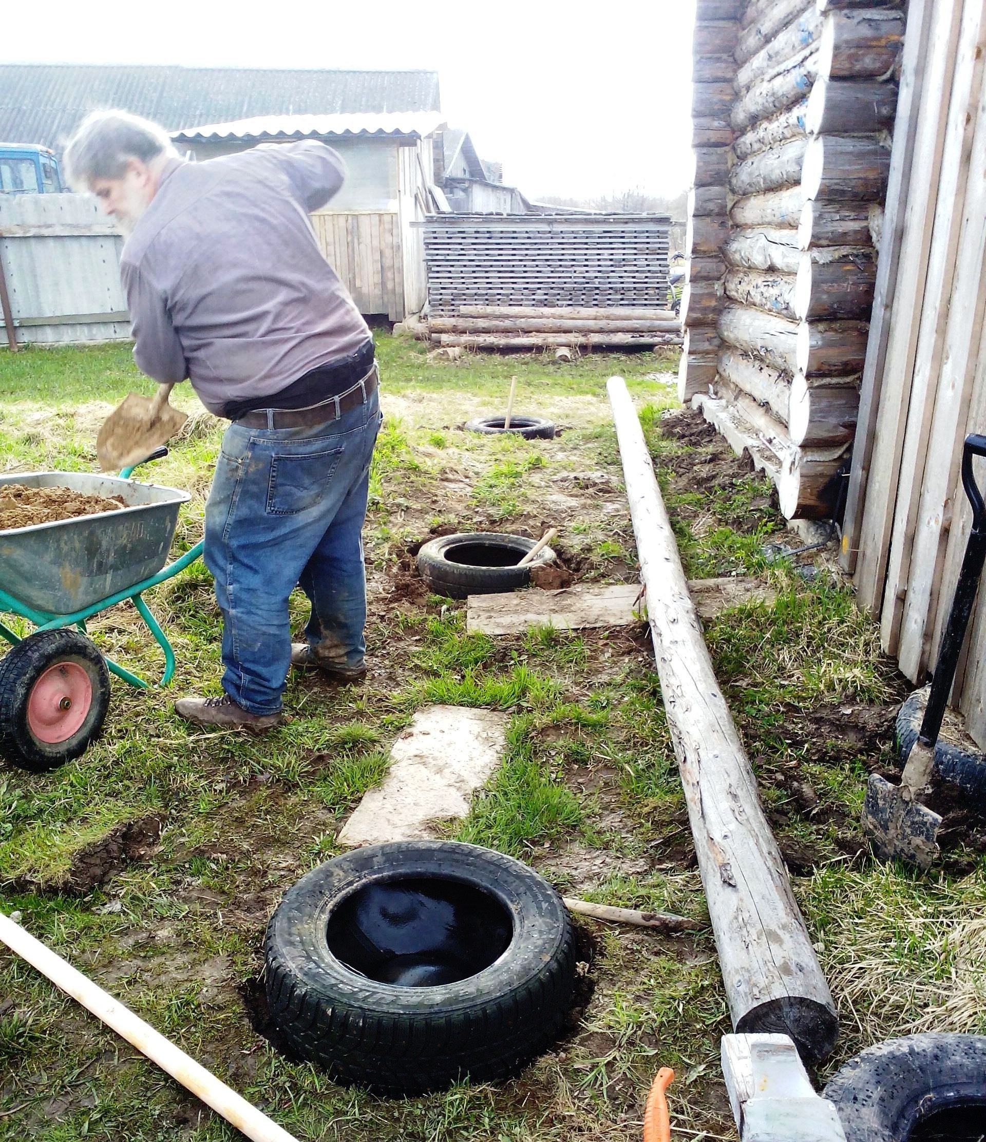 Я и не укладывал. На фото видно, что покрышки уложены прямо на грунт.