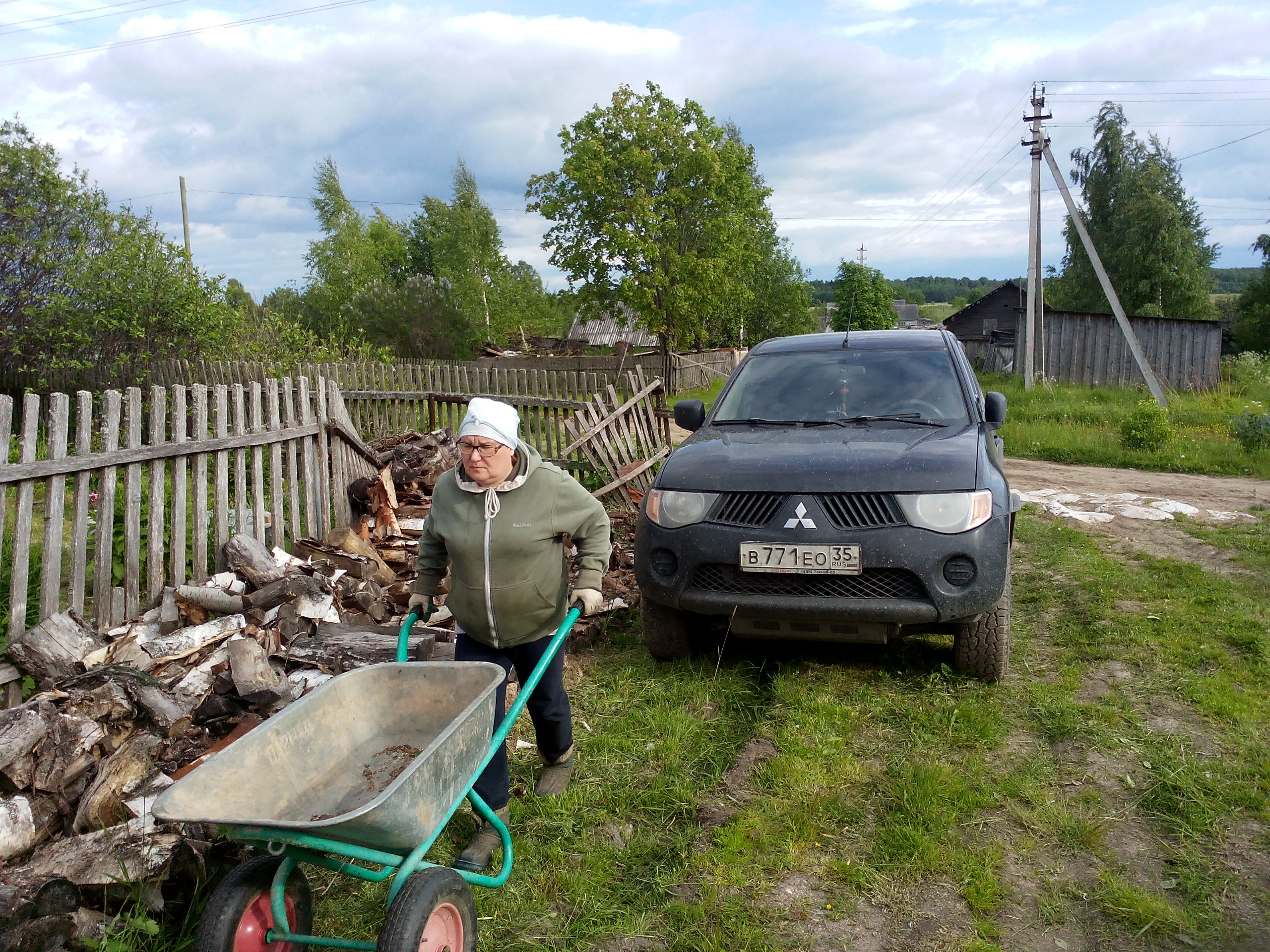 В мою тачку влезало 1,2 куба и приходилось возить вокруг деревни версты по три- из них метров 500 по бездорожью: В результате за неделю вывез 7 кубов в укладку из поленницы и шесть зимней кучи ольхи , трижды был атакован из них дважды укушен пчелами (как взбесились-раньше век не кусали). Короче параллельно достроил и дважды сложил 13-15 кубов и еще место под парочку осталось ...