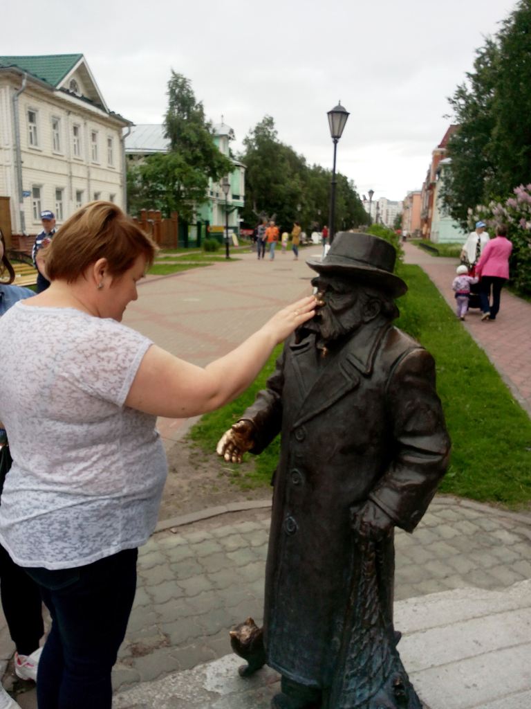 Просто погулять времени почти не было и только сегодня перед отъездом прогулялись по самой интересной пешеходной улице Чумбарова-Лучинского. Улица пешеходная и туда в конце 80-х смогли перевезти без разборки пару десятков деревянных домов из старого центра. А сейчас оформили аллею рядом с улицей скульптурами известных земляков, да и из самой улицы получился очень приличный бульвар.