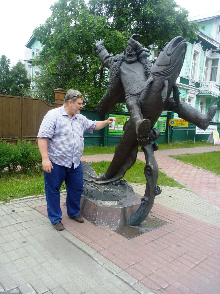 А посередке, на пол-пути между ними восседает Архангельский Мужик- Сеня Малина верхом то ли на треске, то ли на налиме как гимн Поморам: