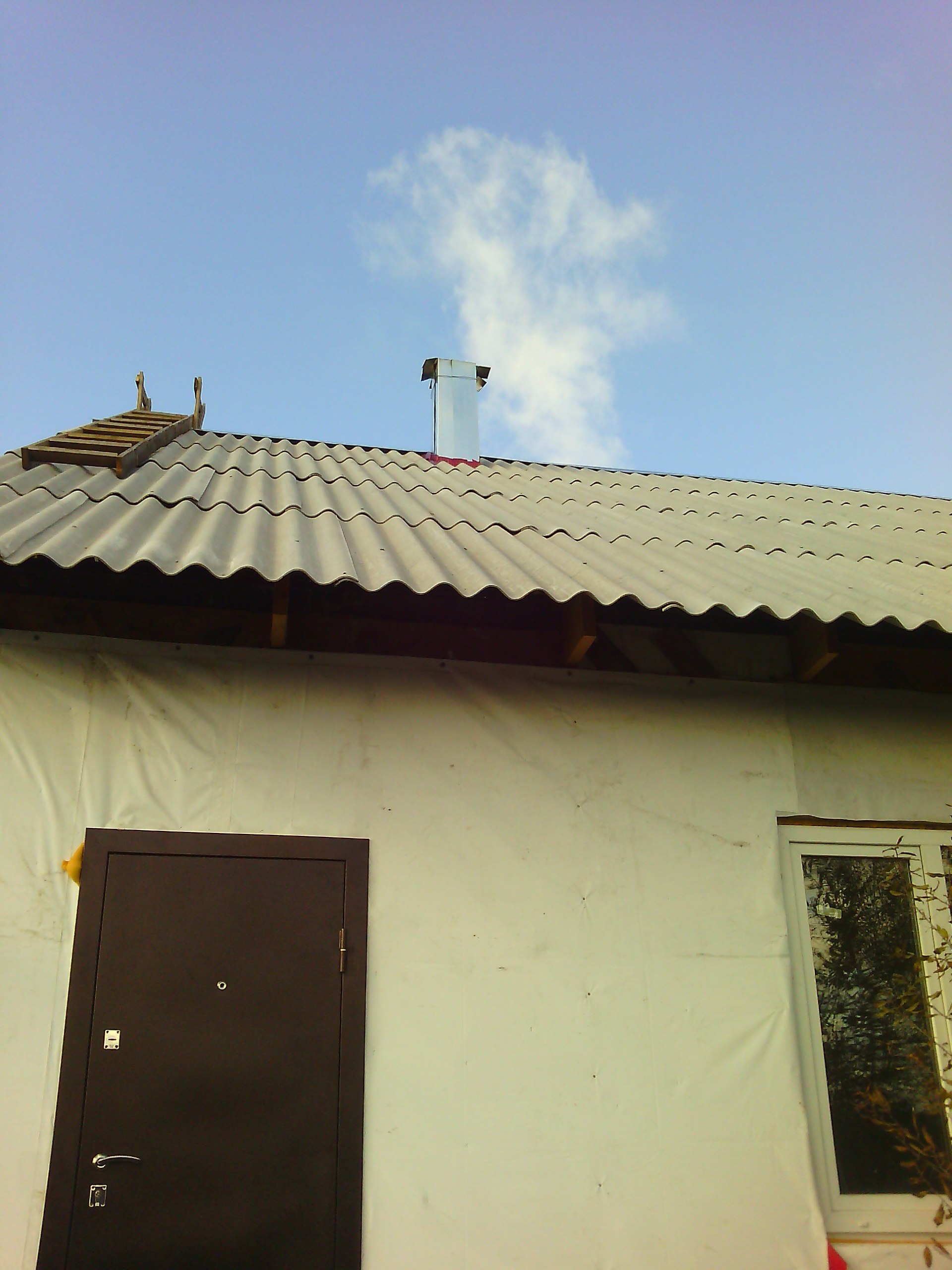 Да нечего особенно-то рассказывать. Вроде на фотках всё видно. Сам дымоход занял времени немного, около трёх дней вечерами после работы. Пилили блок пополам (поперёк) обыкновенной ножовкой. Пилится легко. Убил, правда, одну ножовку совсем. Зубья стачиваются. Когда увидел в строймаге ножовку специальную, для газоблоков предназначенную, допилить оставалось блока два или три. Но мы к тому времени уже нашли решение вопроса. Пилу сделали из полотна ленточной пилорамы. Работает на ура.