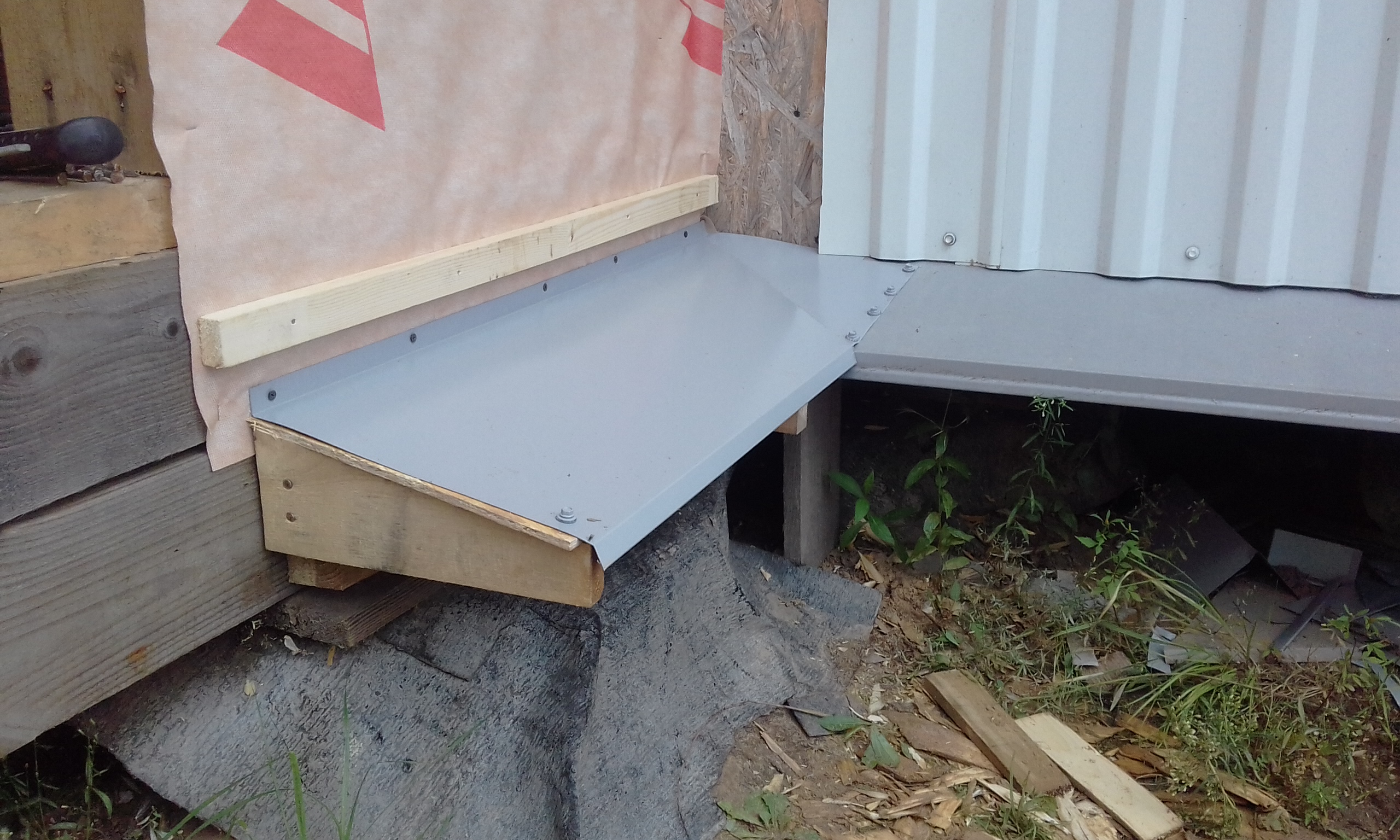 Обшил 1,5 стены. Торцовый фасад и главный. Нужно закрывать периметр. Остро встал вопрос приобретения двери. Ищем на "Авито" по-приличней и недорого.