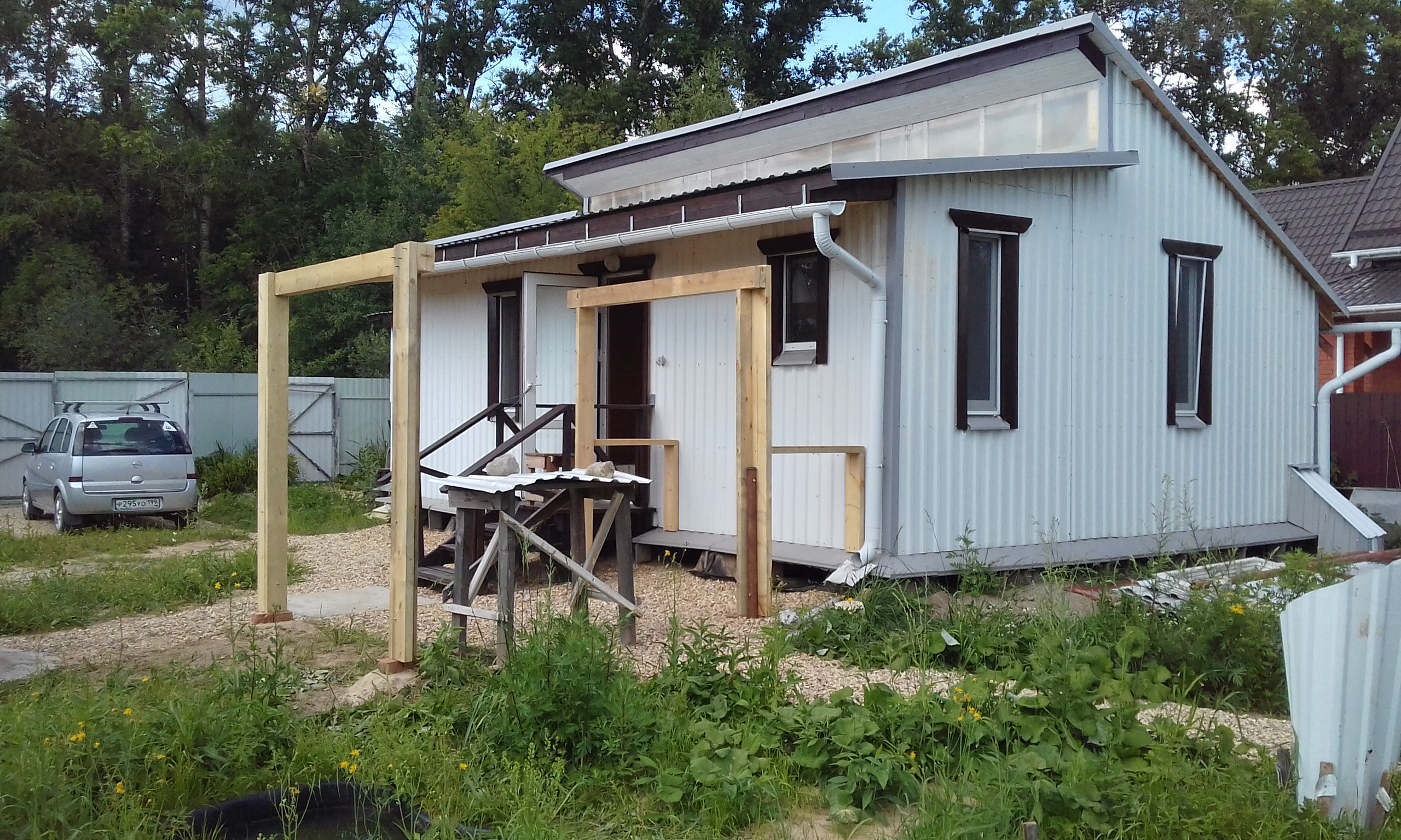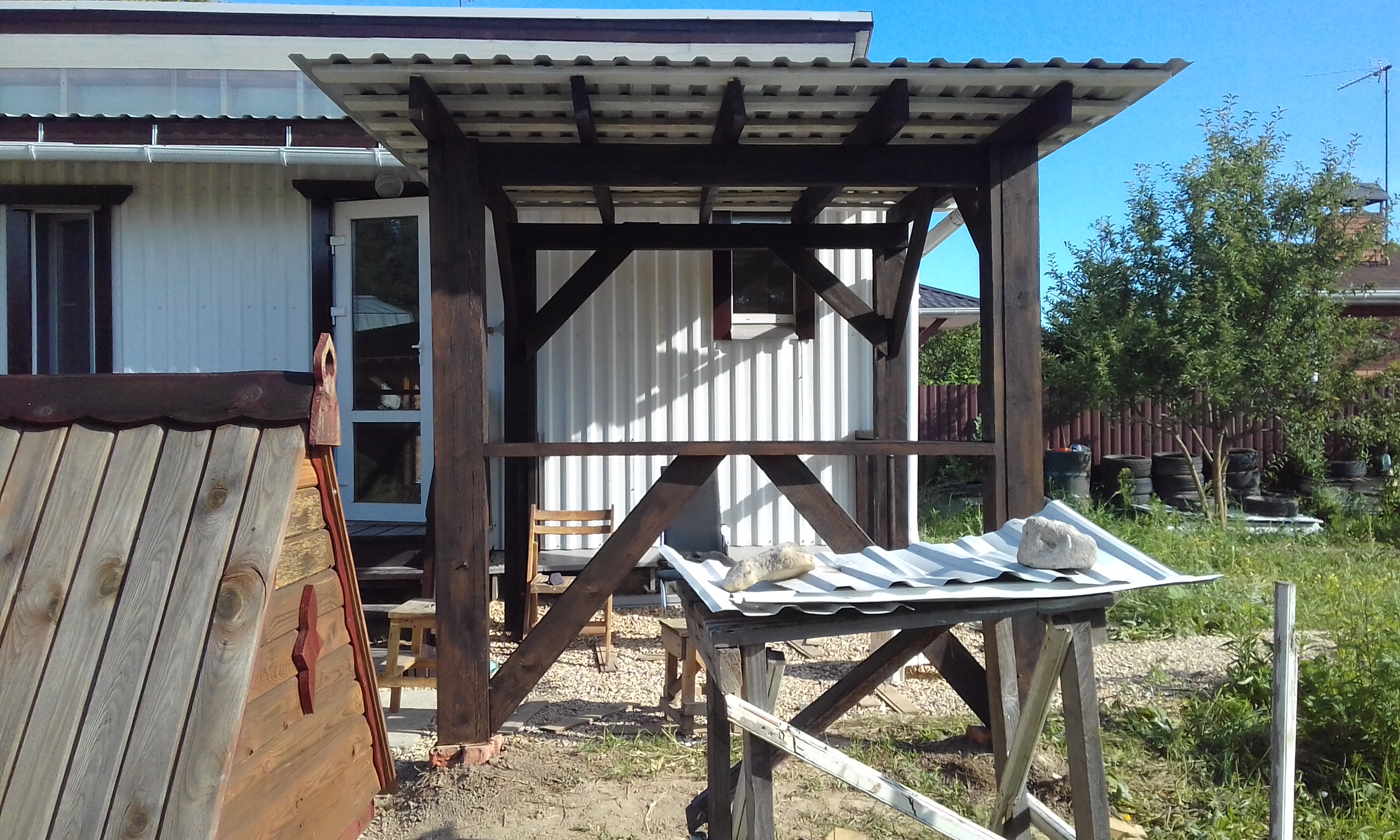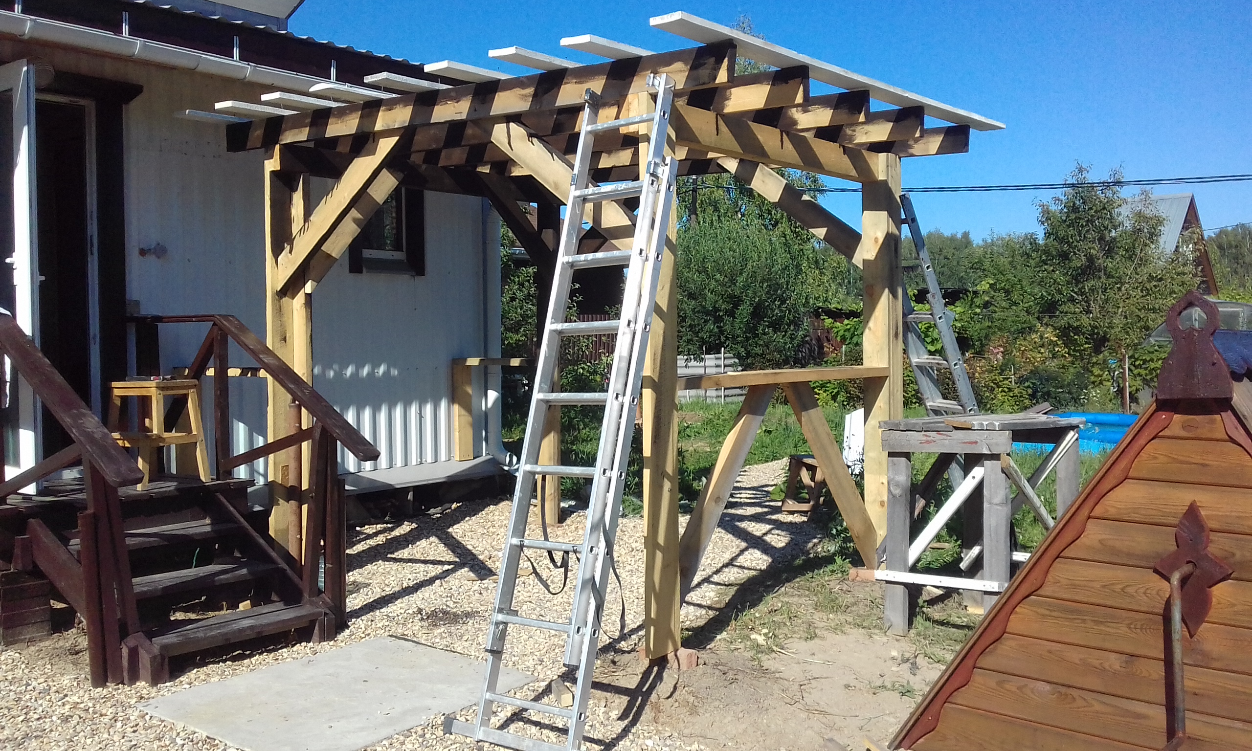 Завершил строительство навеса-беседки.