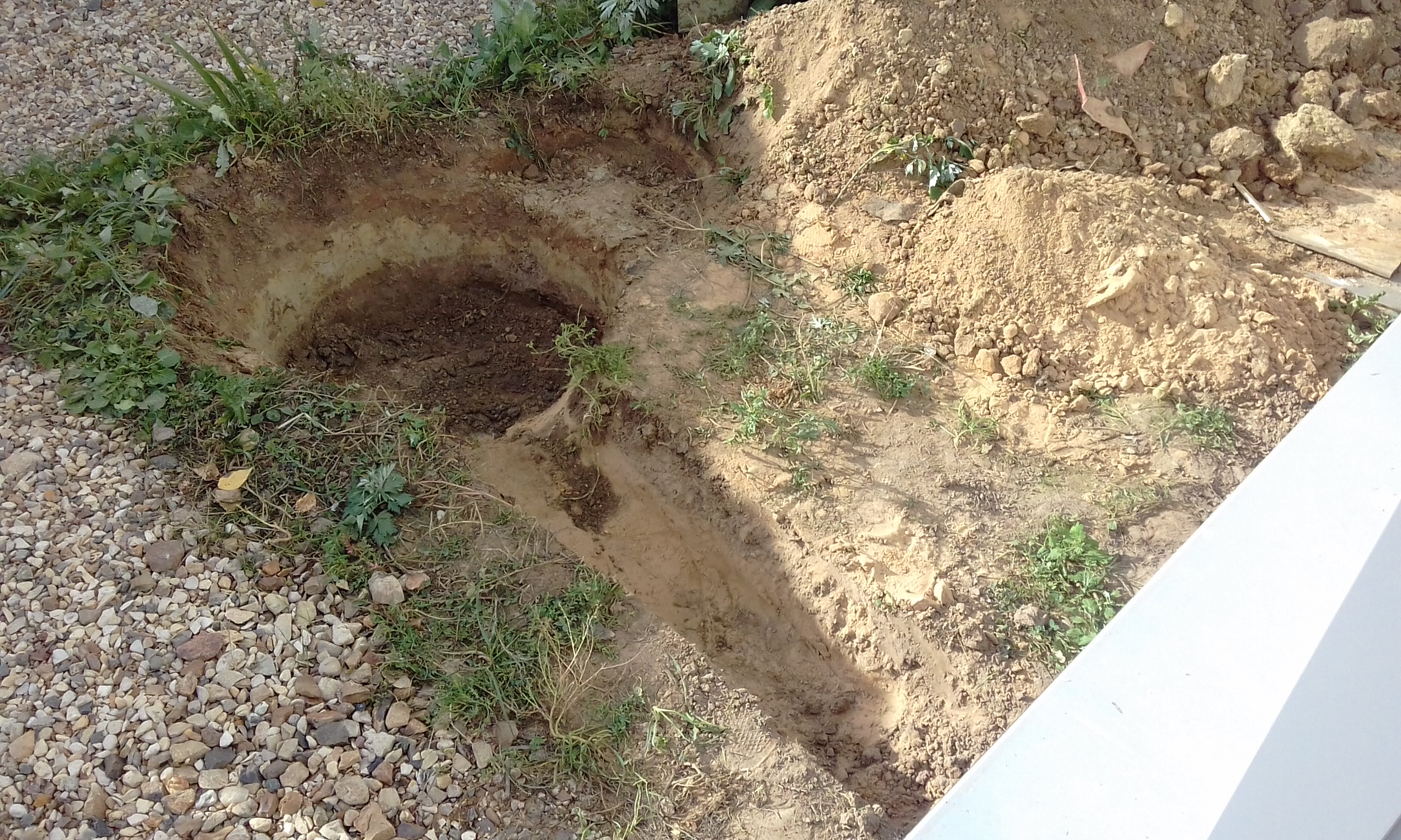 Приступил у устройству фильтрационной кассеты. Основные требования норм по отступам удалось выполнить. Расстояние от кассеты до колодца получилось 15 м (норма min 12 м), расстояние до соседского участка 3,5м (норма 4м) немного не дотянул. До другого участка 0,65 м. Но там глухой забор, а за ним летняя каменная кухня и потом там будет глиняная перемычка между забором и кассетой.