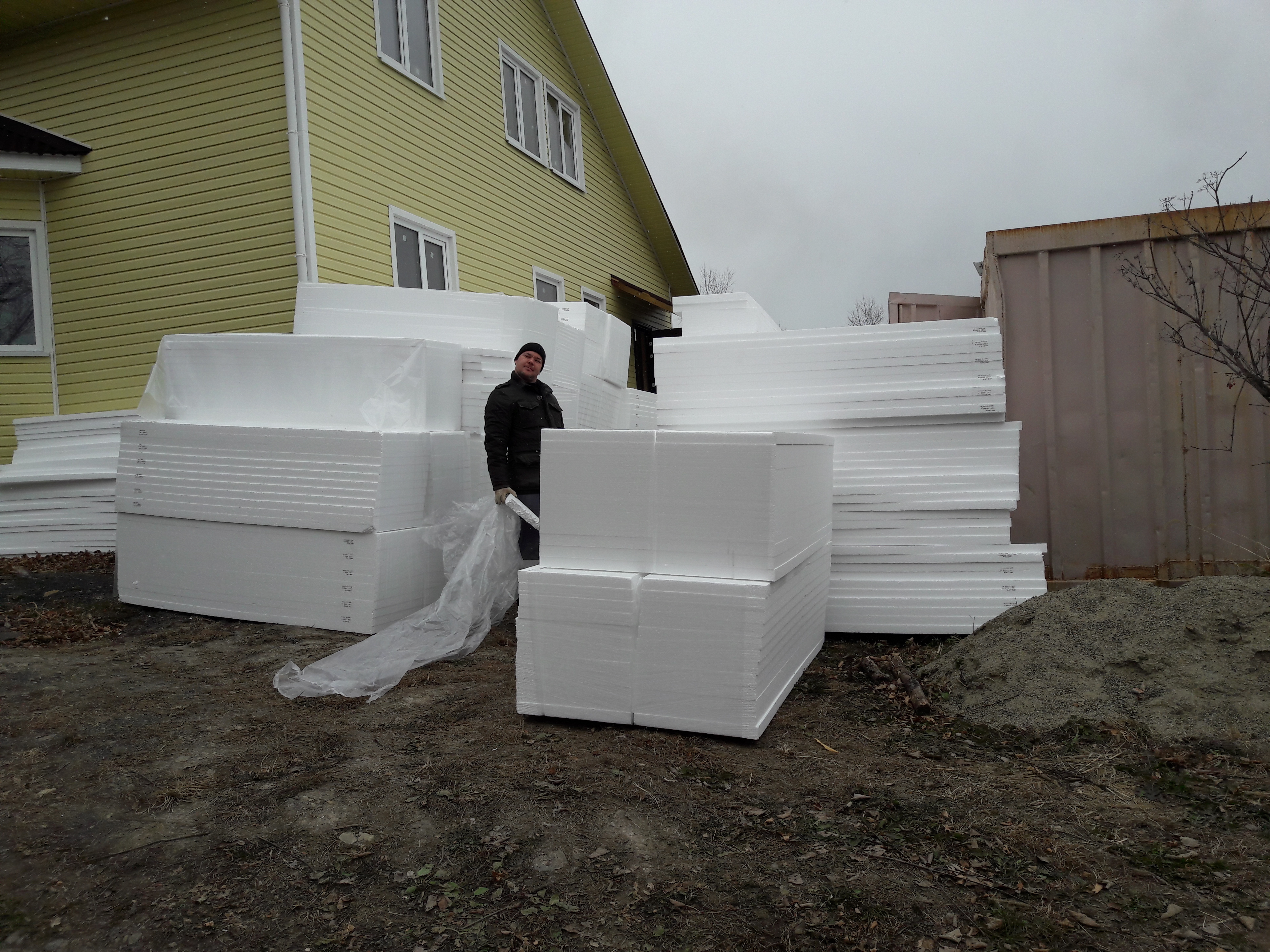 А теперь к стройке. Привезли значит мне на праздник 48 кубов пенопласта... хорошего, белого