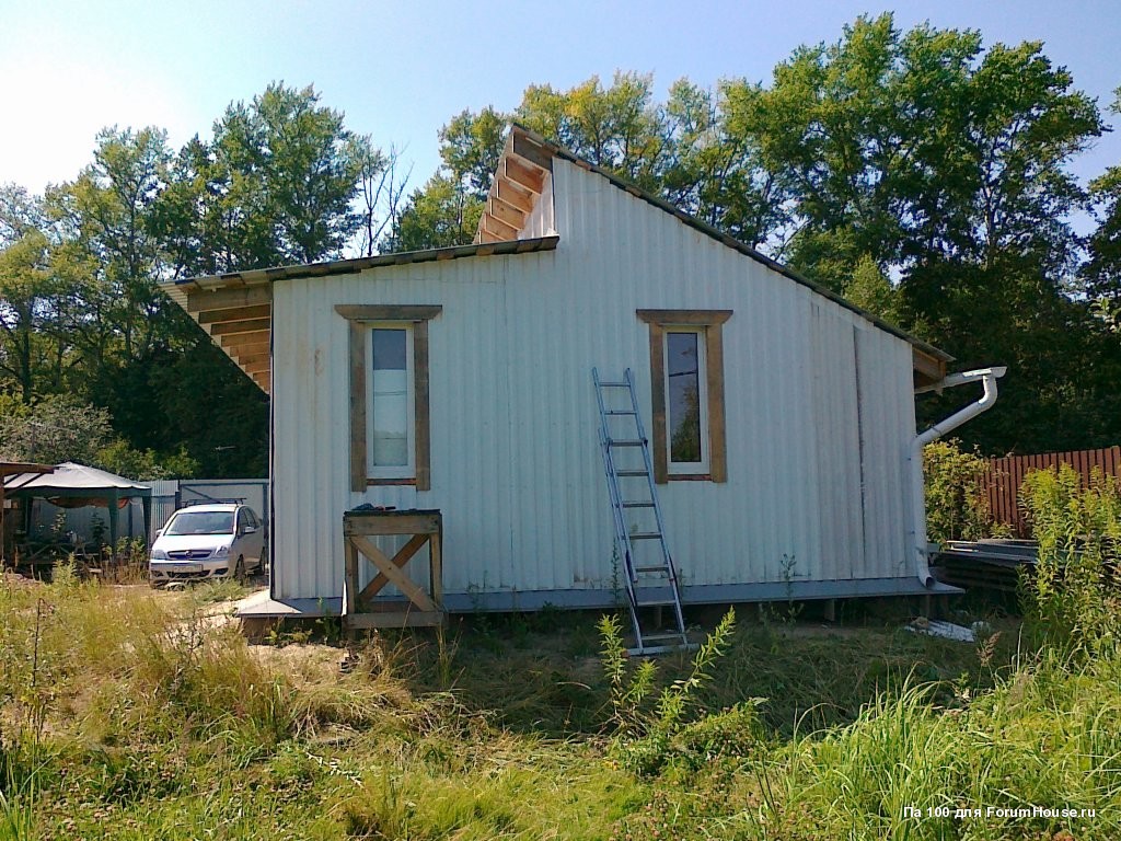 Для установки козырьков над окнами делал надрезы в обшивке стен.