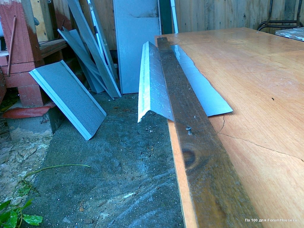 Таким образом гнул мет. листы для козырьков над окнами.